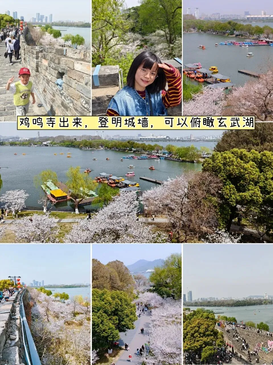 逛完鸡鸣寺一定要去旁边的解放门城墙,登顶后能看到玄武湖全景,碧波湖水搭配樱花林海,山水城林同框,拍照巨出片,绝对不亏。