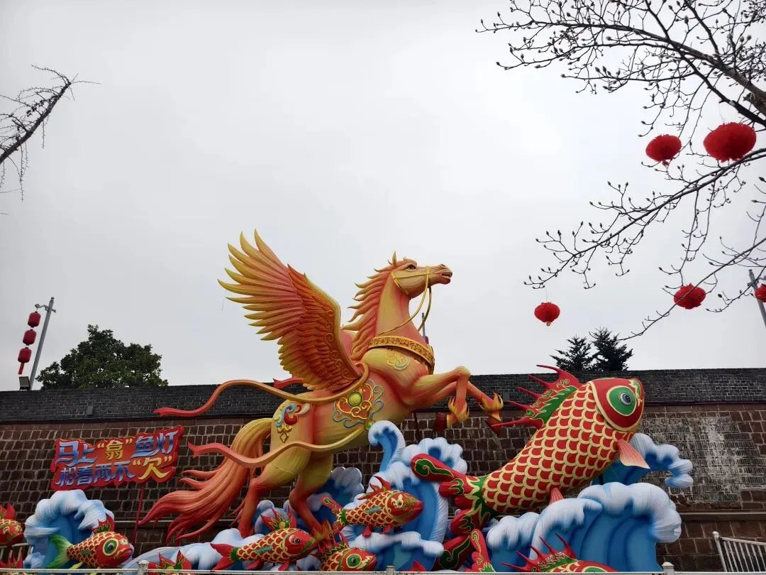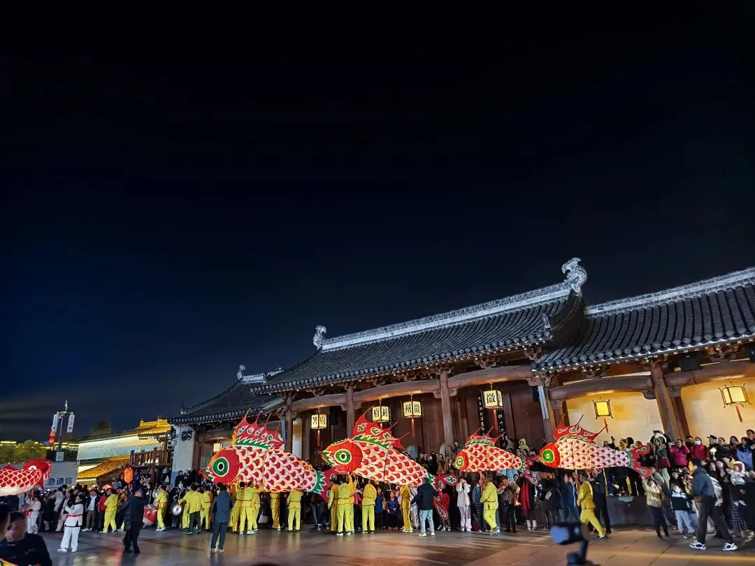 我们去那天正好是小年夜,在府衙门口直接偶遇了好几个村的鱼灯表演,氛围感拉满。