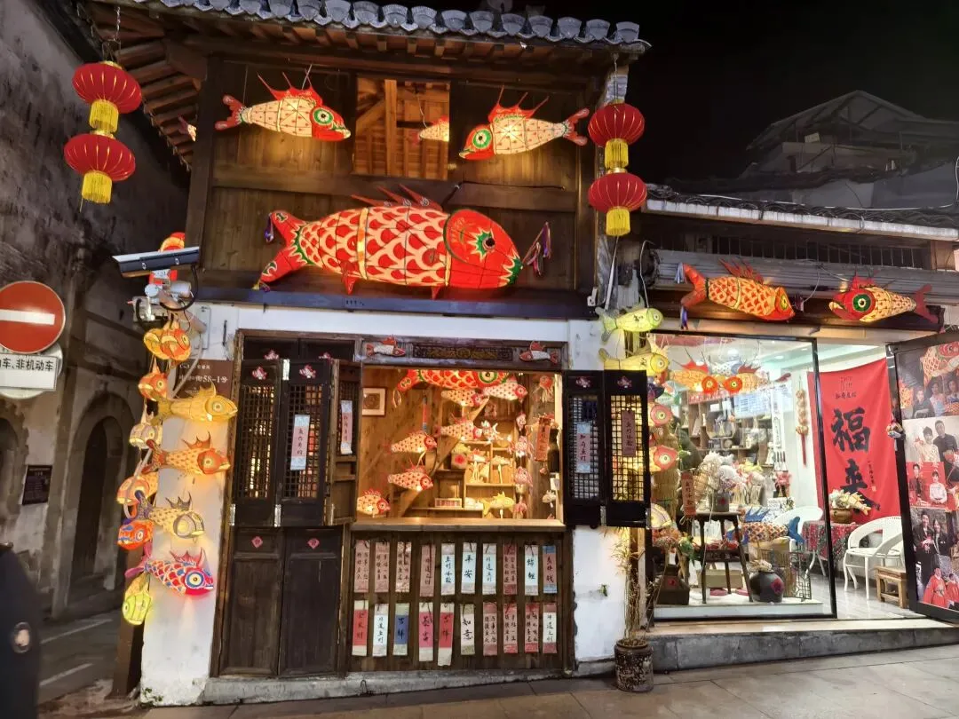 商业氛围不算淡,但徽派建筑是真的好看,鱼灯尤其漂亮。