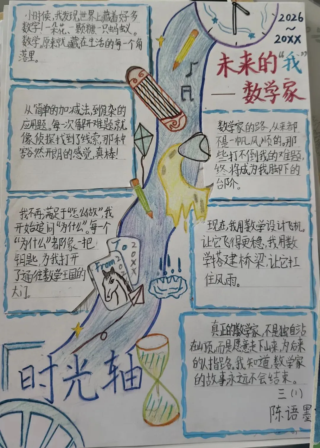 陈语墨提出了一个大胆的想法:“未来的我可能是一位数学家,可以不用笔算出圆周率,还能用数学创造一款稳定性很强、几乎不消耗能源的飞机。”