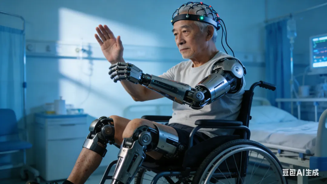 李奕卓研究后找到方案:“我要做一种可以穿在身上的机器外衣,通过脑电波把想法传递给AI机器人,再由AI机器人控制外骨骼帮助站立、行走。”