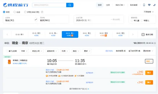 成都=瑞金=南京航线计划于2026年3月31日首航,由祥鹏航空公司采用波音737机型每周二、四、六执飞,航班时刻为:8L9665航班计划07:10从成都天府机场起飞,09:20抵达瑞金机场,10:05从瑞金机场起飞,11:35抵达南京禄口机场;8L9666航班计划12:45从南京禄口机场起飞,14:30抵达瑞金机场, 15:15从瑞金机场起飞,17:30抵达成都天府机场。目前,该航线已全面进入销售系统,旅客可通过携程、同程等OTA平台查询并预订机票,也可致电赣州航空票务服务中心0797-8196688咨询和购票。