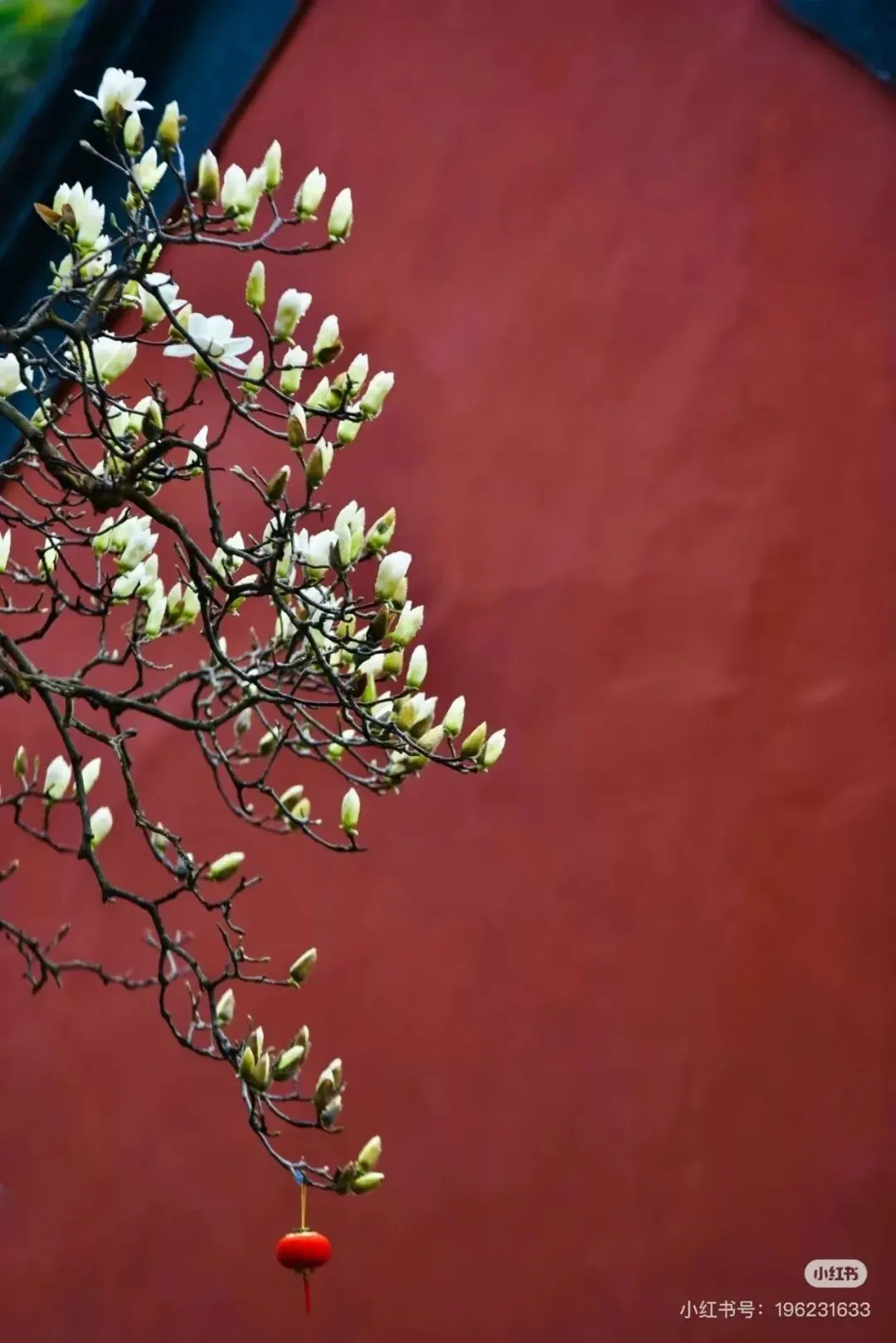 当早春阳光洒下,清凉山公园的玉兰有的已经缓缓绽开,但大部分还是等待中。古刹和书院的“双倍”加持,让这里的玉兰气质非凡。盛放时花白如玉,气质如兰,衬着红墙、黑瓦,满树繁花显得格外清幽雅致。