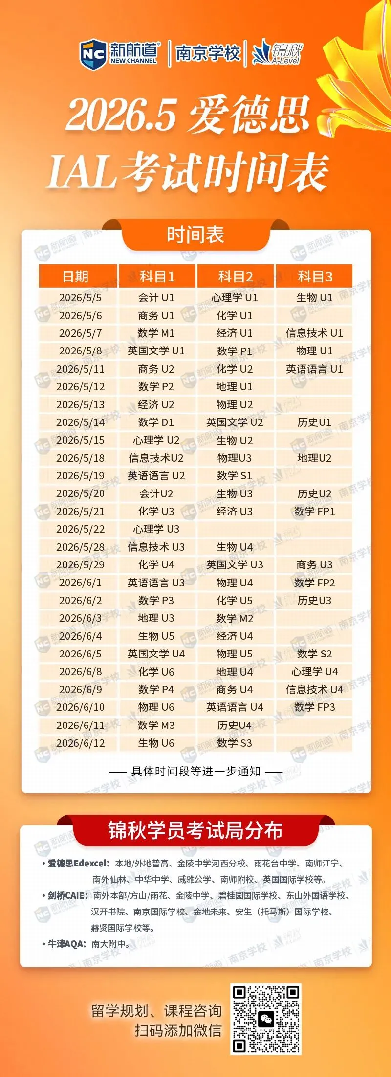 细心的家长会发现,这10枚offer中,有3枚来自同一所机构:新航道锦秋A-Level。更令人惊讶的是,这3位录取者,并非都是传统意义上的“国际班牛娃”:2位来自南京外国语学校普高,1位来自南京外国语学校剑桥班。