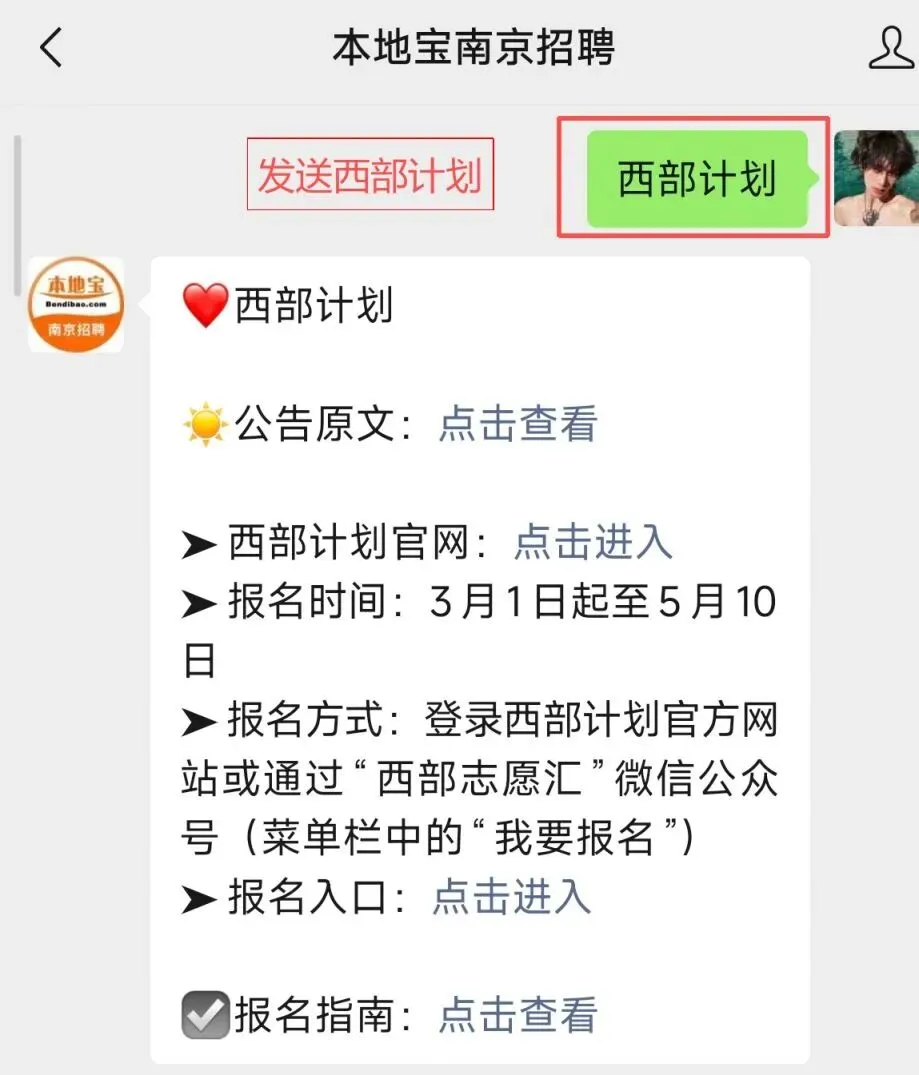 ⭐推荐服务:您可以长按下方二维码,关注【本地宝南京招聘】公众号,在对话框回复【西部计划】,即可直达报名入口!还可获取公告原文!