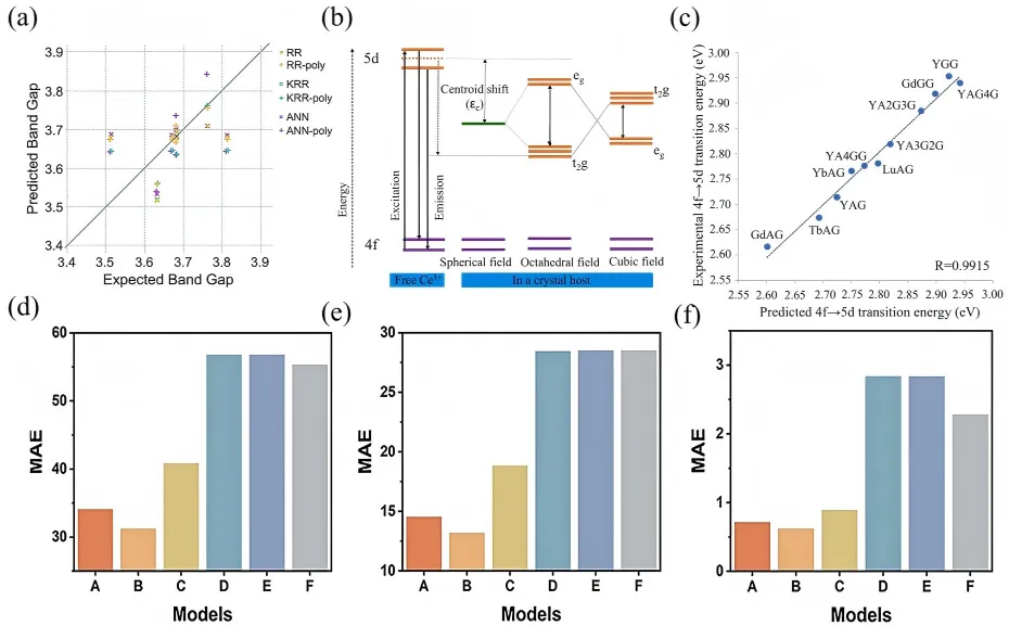 图3 基于机器学习的材料带隙预测模型对比及Ce3+掺杂晶体光学性能预测研究