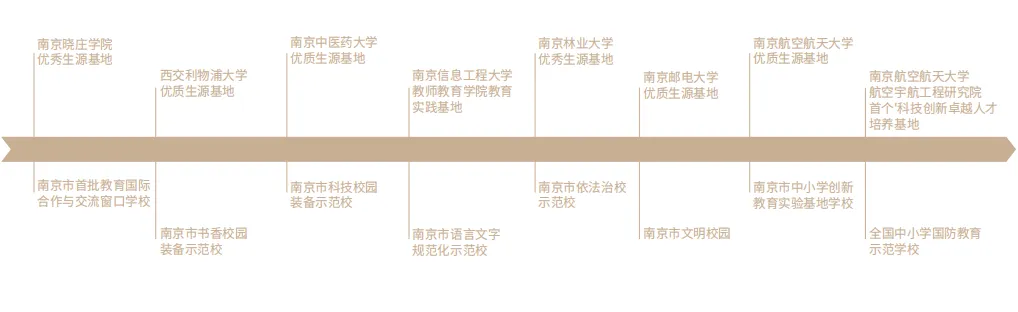 同时,学校不断拓展与多所高校的合作交流,先后成为“南京邮电大学优质生源基地” “南京林业大学优秀生源基地” “南京信息工程大学教师教育学院教育实践基地” “南京中医药大学优质生源基地” “西交利物浦大学优质生源基地” “南京晓庄学院优秀生源基地”等。