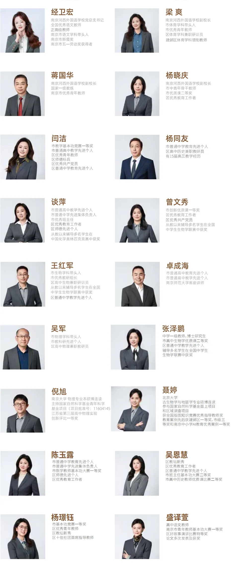 学校管理团队汇聚知名校长、南外专家学者及建邺区优秀领导干部,依托民办学校优势,广纳贤才,组建起一支兼具理想信念与扎实学识的优秀教师队伍。