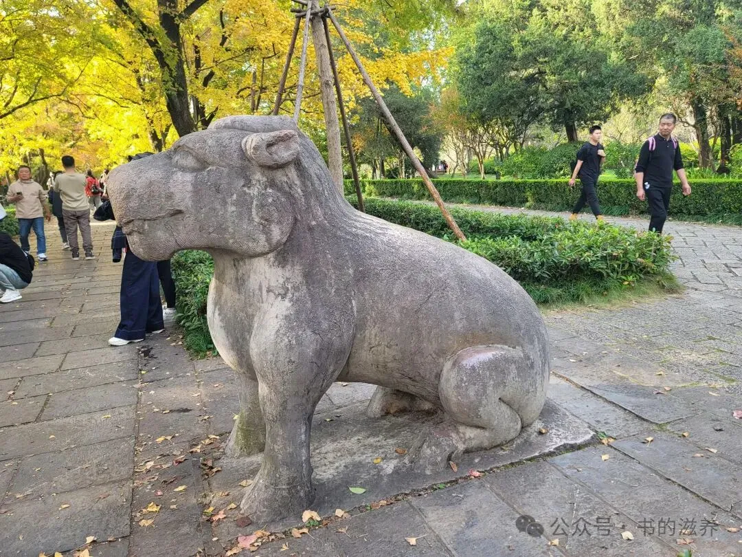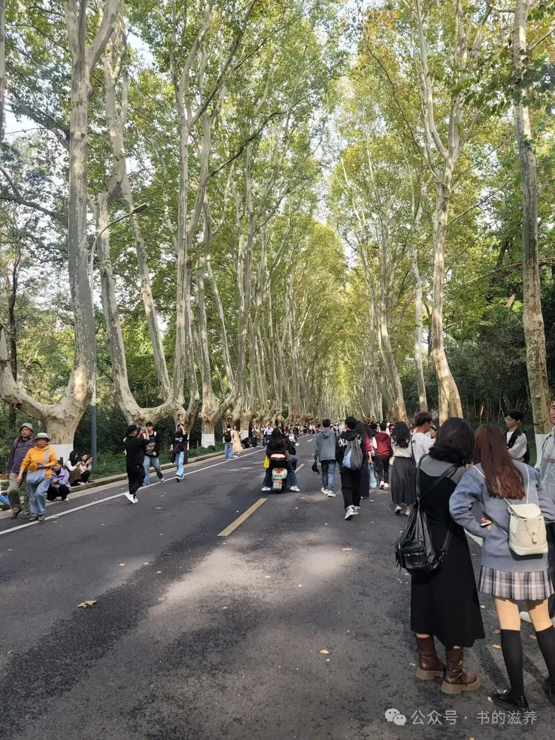 接着去明孝陵。最美梧桐大道上的梧桐树叶子微黄,还没红,但仍是旅拍的网红点,整条大道热闹非凡。