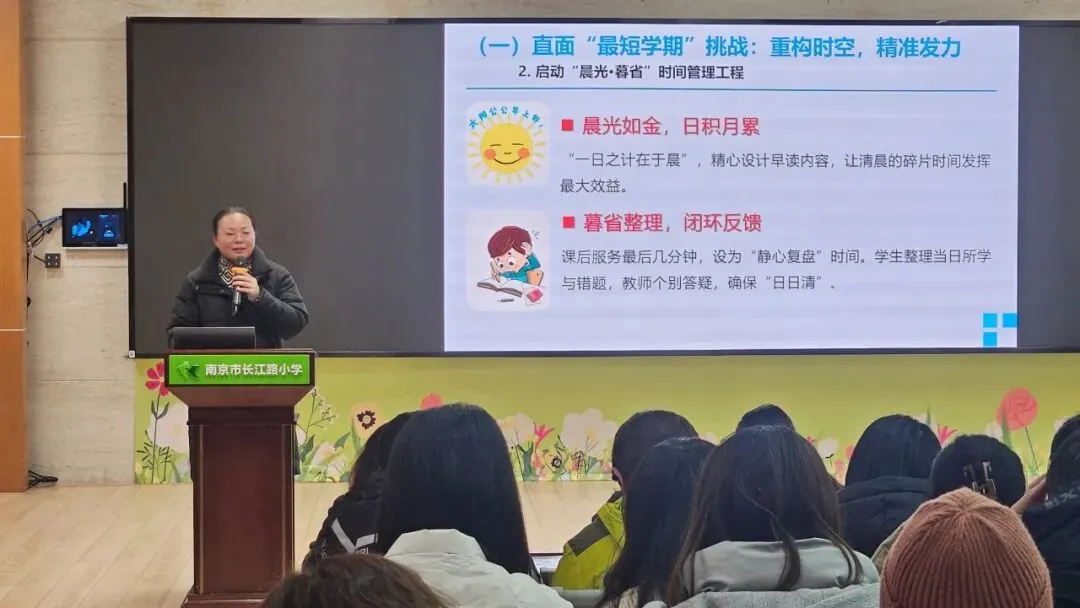 会议开始之际,教导处丁爱平主任以“提质增效,跃马新高”为主题,宣讲了教学计划。丁主任着重指出,需直面“最短学期”所带来的挑战,在重构时空并精准发力的同时,聚焦“小班制”开展深度改革,以筑牢质量底线。此外,还应聚焦毕业班工作,深化常规检查工作,落实减负提质要求,并实施闭环管理。