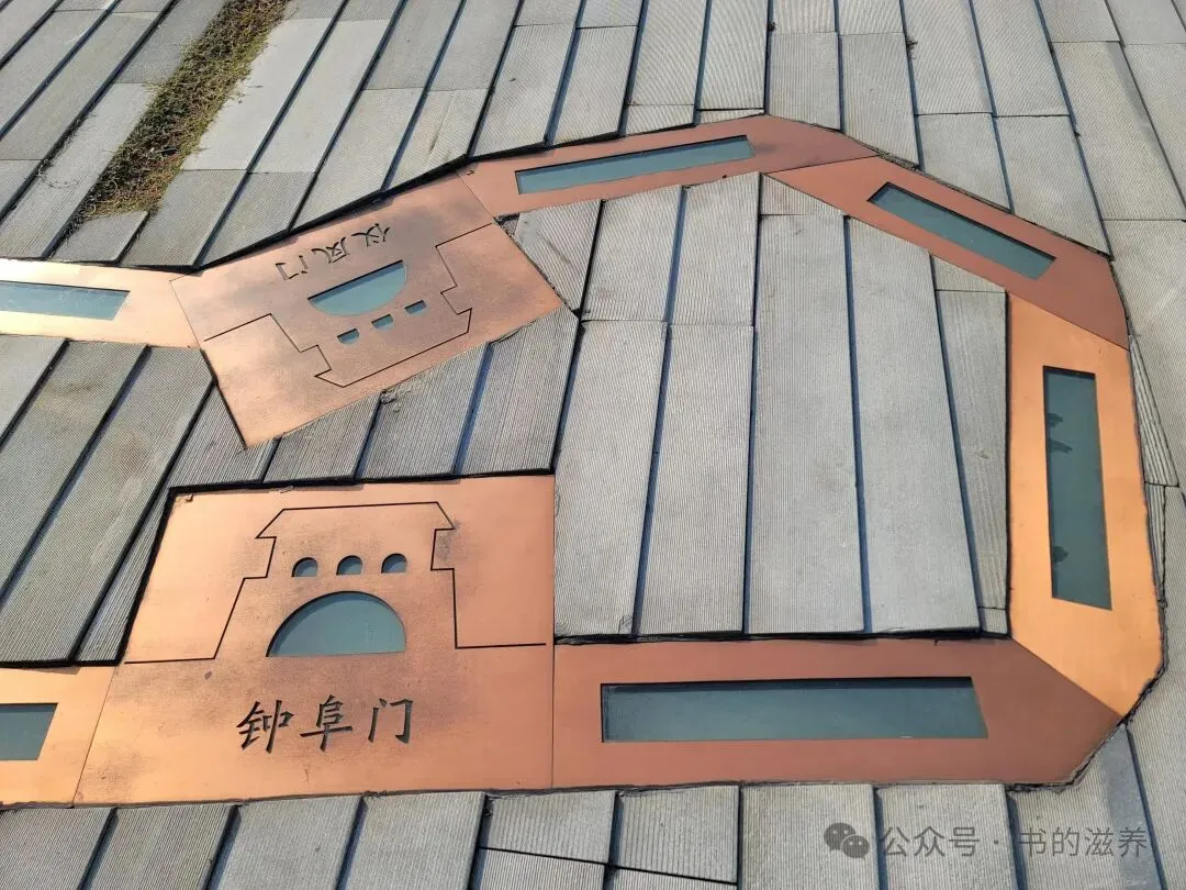 地板上隔几步就有片金属刻着与城墙相关的信息。