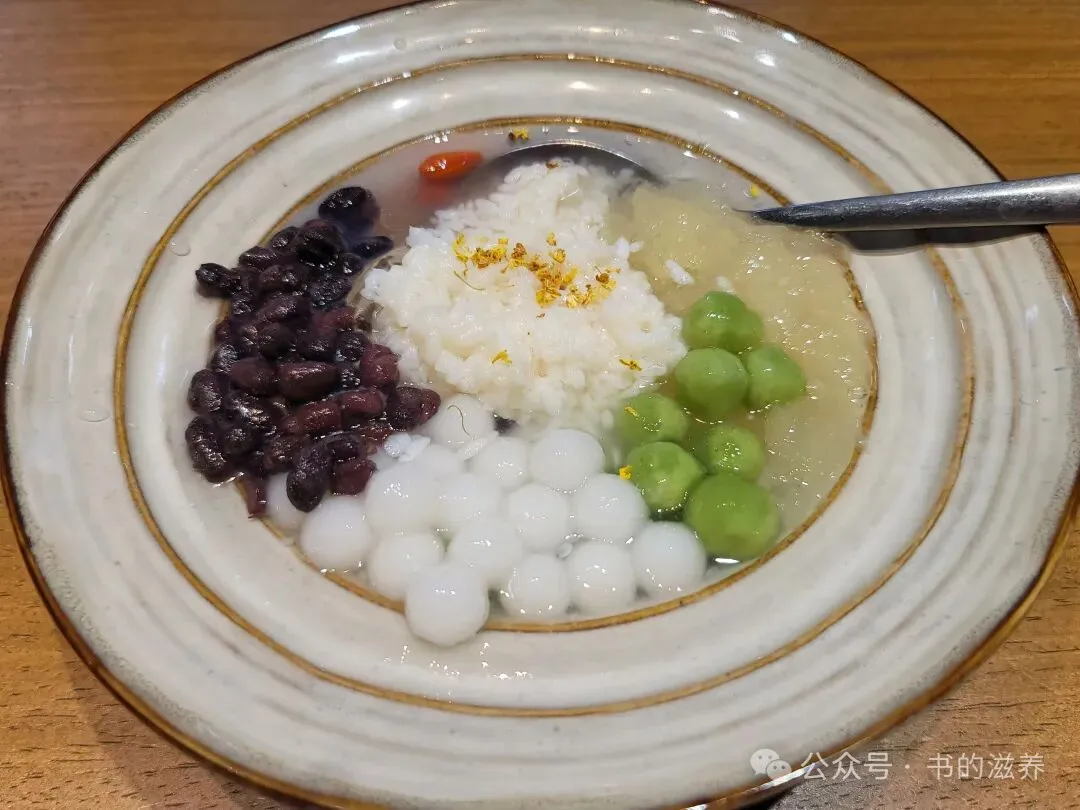 我们在一家小店吃了两碗一凉一热的酒酿甜品,很好吃。