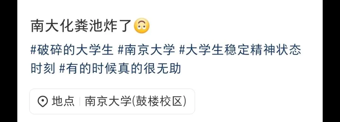 今天南京大学出圈了,不过方式比较独特,就是南京大学化粪池炸了。