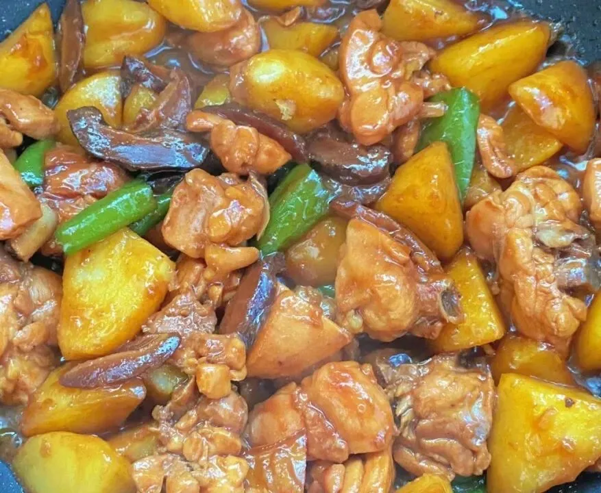黄焖鸡块、醋溜笋瓜