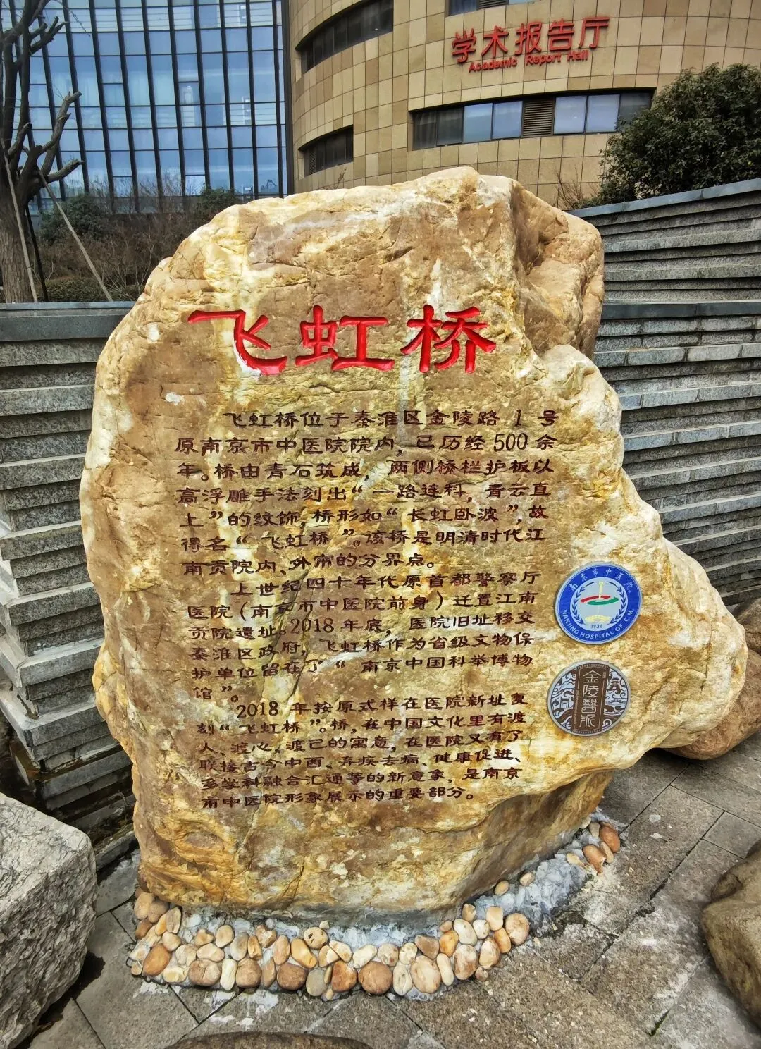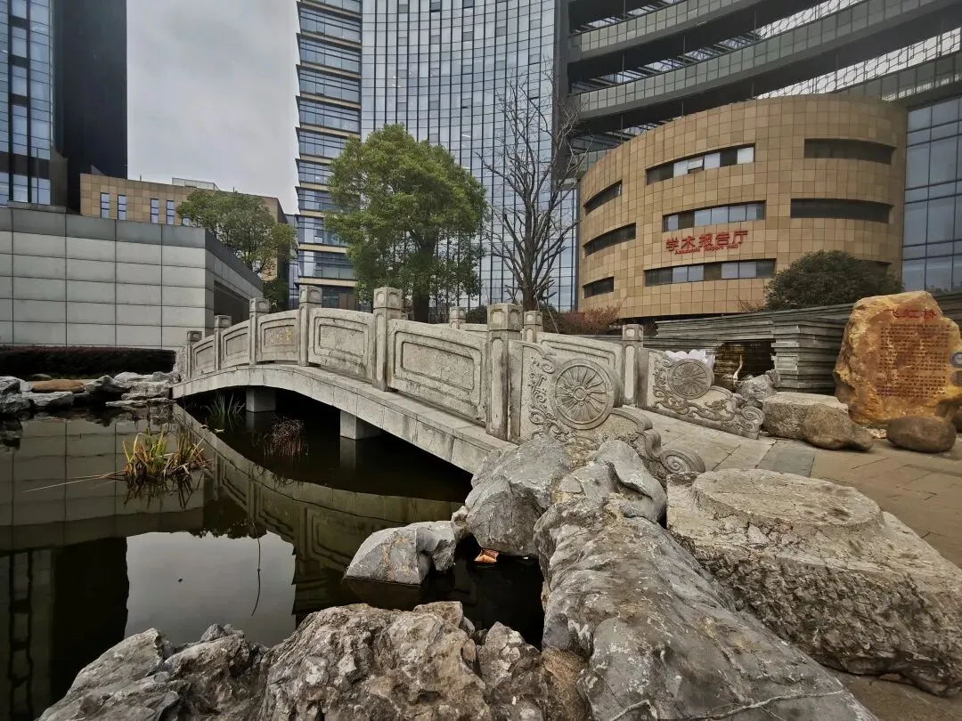 飞虹桥复刻自明清江南贡院,从科举分界的功名之桥,变成了守护健康的医道之桥,青石浮雕依旧精美。