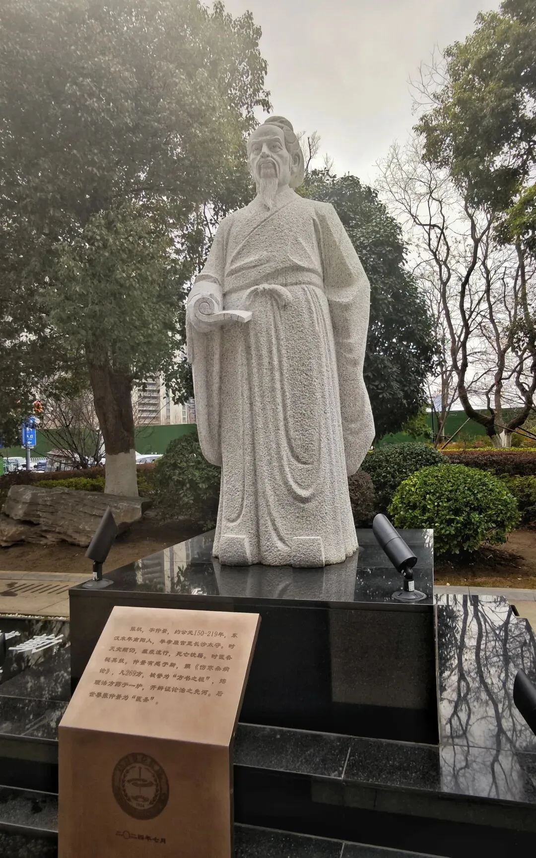 医圣张仲景的雕像静静伫立,提醒着每一位医者“大医精诚”的初心。