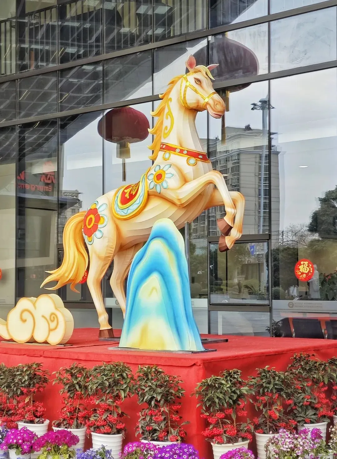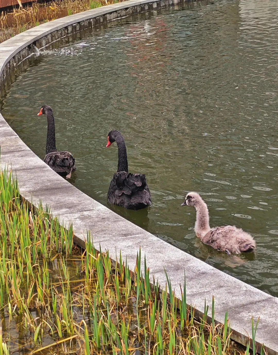 飞虹桥下的黑天鹅一家,为厚重的历史添了几分灵动生机,金马彩灯又透着浓浓的年味儿。