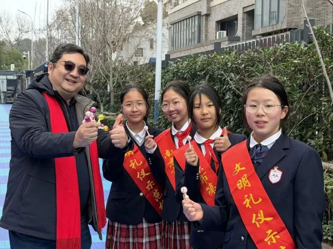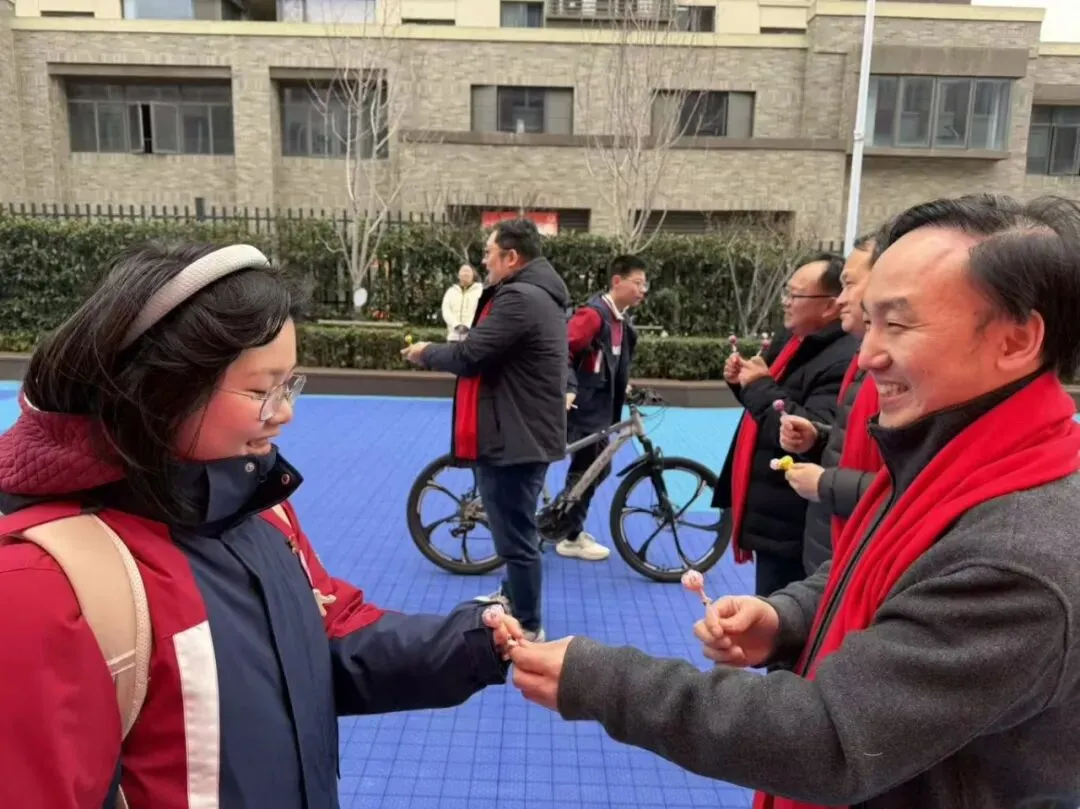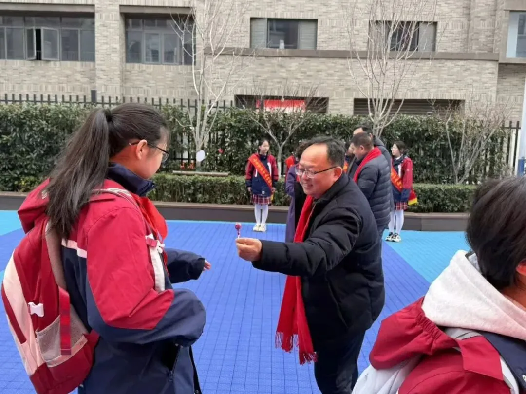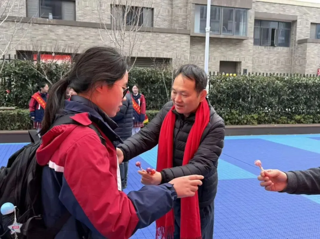 学校为返校的同学们精心准备了甜甜的棒棒糖,校领导与礼仪队的同学们在校门口热情地迎接大家,祝福同学们在新学期里“棒棒”成长,收获满满。
