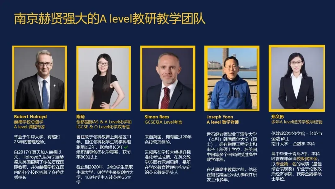 南京赫贤旨在培养直面未来影响世界的终身学习者,过去三届姐妹学校宁波赫徳毕业生100%进入全球前50名校,75%斩获英国G5名校,作为义格教育集团的第五所学校,赫贤高中课程将会结合赫徳最好的资源以及美国创新教育落地最扎实的课程,延续赫徳导师制和生涯老师制,7-10年级学生实行双轨制英文课程提升语言水平,同时,遵循全人教育的理念,设置STEAM、音乐、美术、素质拓展等课程。