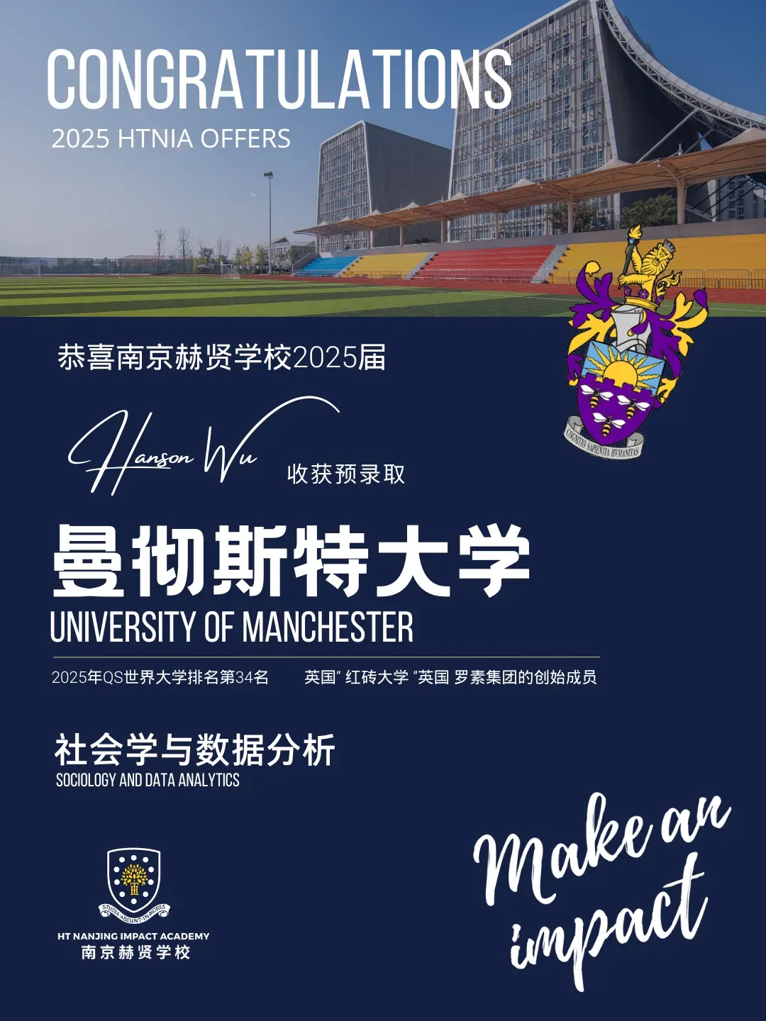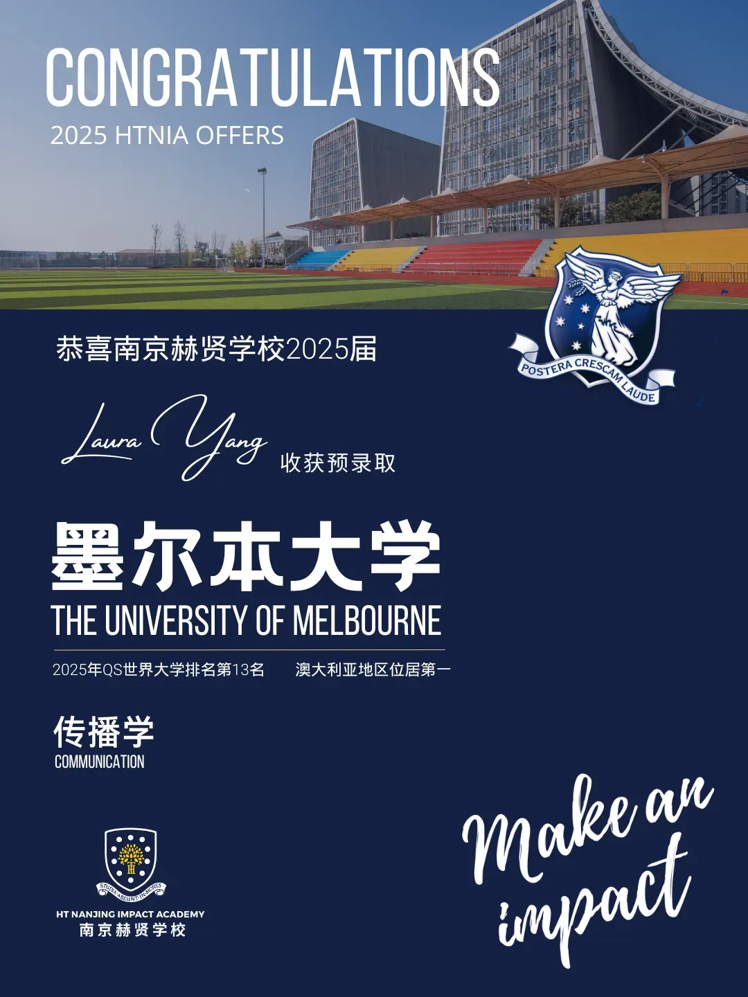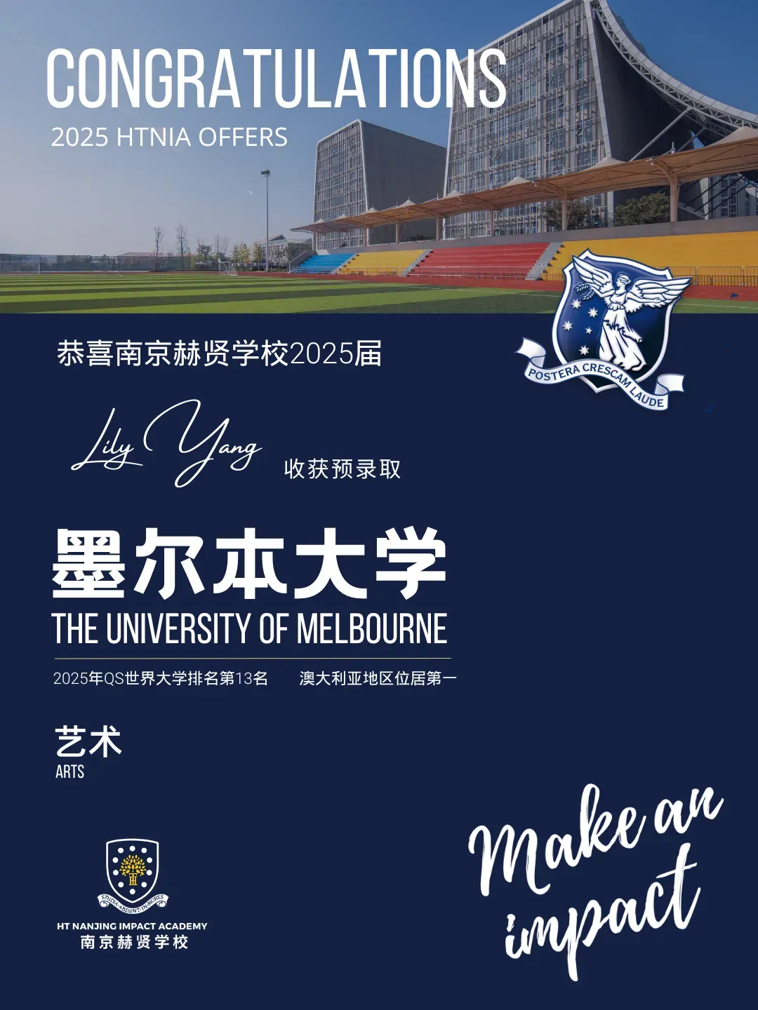 录取季刚刚开始,2025届赫贤毕业生们就频频为我们带来好消息。截至目前,他们已经收获了多封前100名校的预录取offer,包括澳洲第一的墨尔本大学、英国名校曼彻斯特大学、游戏设计专业美国排名第五的罗切斯特理工学院等。我们为每一位学子所取得的成长与蜕变感到无比的喜悦与自豪!