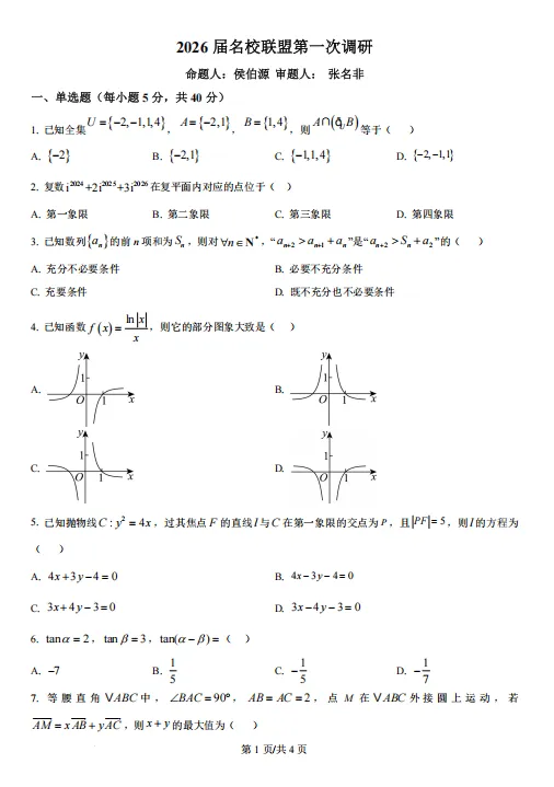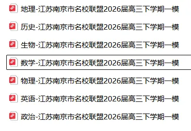 【高三】一模丨江苏南京市名校联盟2026届高三下学期一模