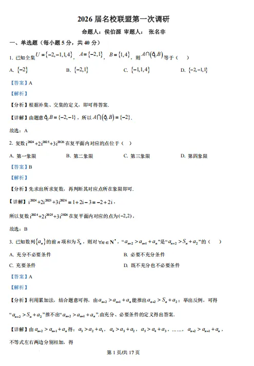 >【高三】一模丨江苏南京市名校联盟2026届高三下学期一模
