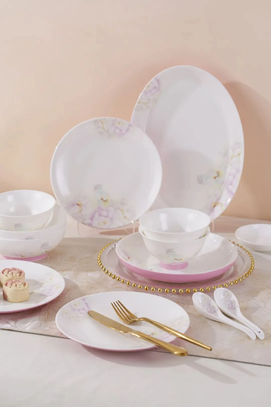 六月荷花,清雅怡人。釉色温润,淡粉描边如晓雾轻染,青碧勾勒小荷、莲蓬,蜻蜓栖于荷尖,似风过即飞。用它盛一餐饭,便如同盛了一方夏日小景,寻常日子,也有了水色江南的灵秀。