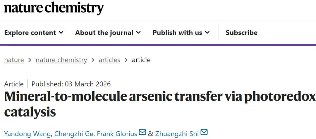 南京大学「国家杰青」史壮志最新Nature Chemistry | 光氧化还原催化实现矿物态砷向分子态的转化!
