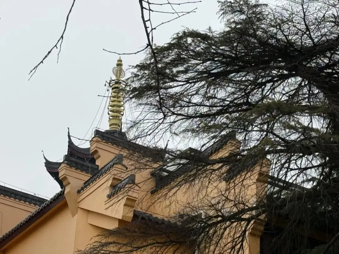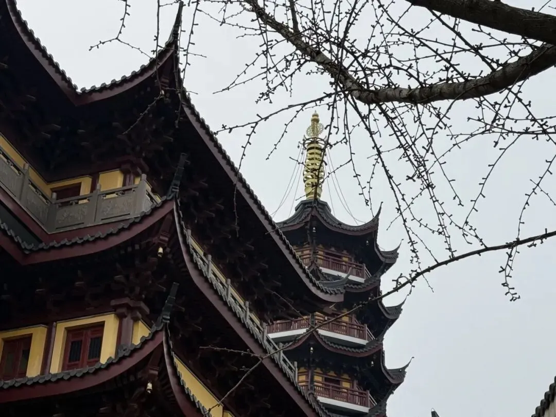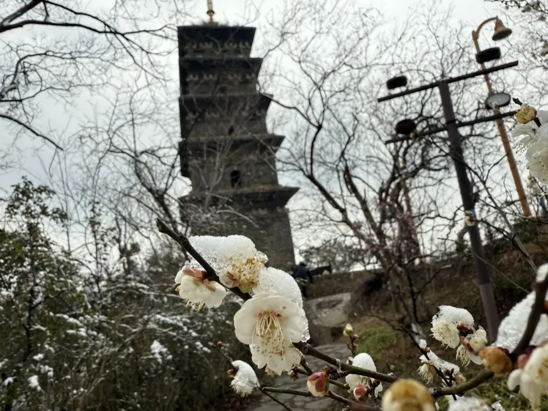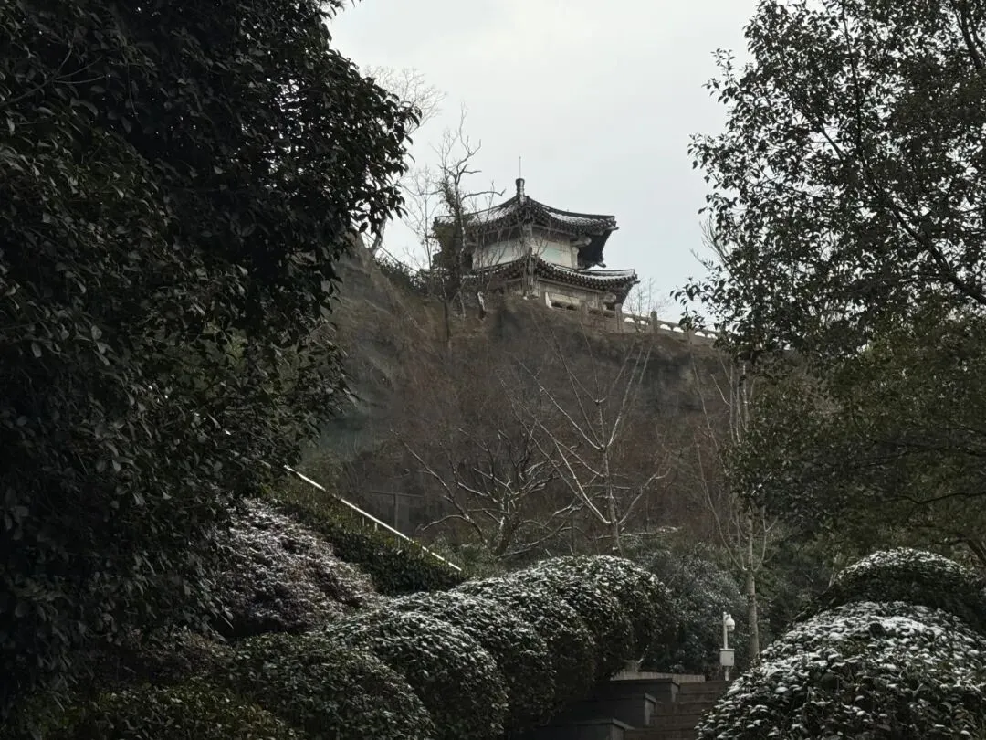 一直走能走到鸡鸣寺,南朝四百八十寺之首,冬樱盛开,青瓦黄墙结合后,虽是寒冬,看起来却春意盎然,虽然那天鸡鸣寺屋顶的雪还没有消融。