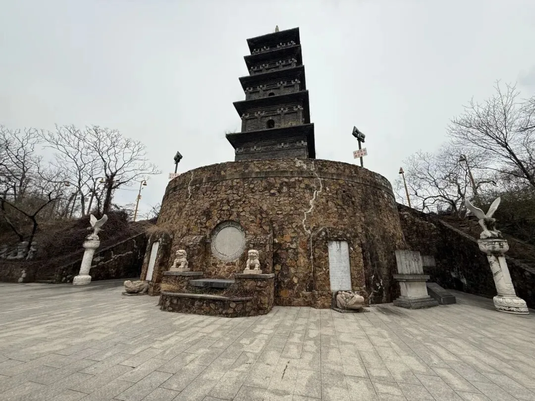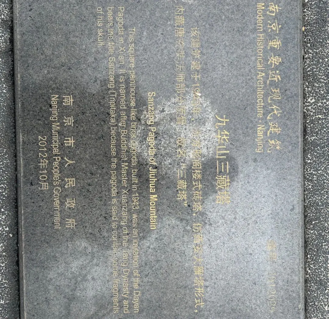 九华山上有一座三藏塔,里面埋葬着唐玄奘法师的部分顶骨,墓地前有一个玄奘塑像,再下面是玄奘寺。