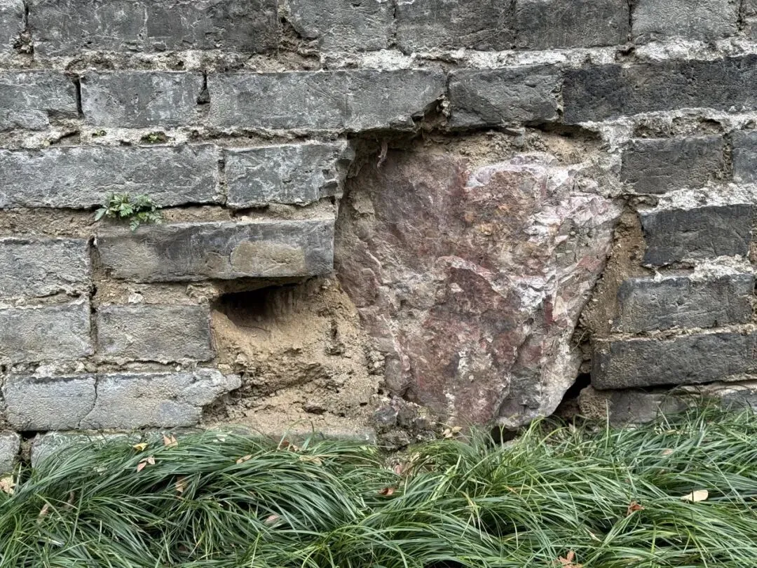 继续前行,又下到了明城墙脚下,许多城墙已经老化。前些年也一直有因为天灾人祸被损毁的,后来政府进行了修缮,原先的砖损毁后,挪用了许多内部的砖,二次加工后上面的文字都很模糊了。