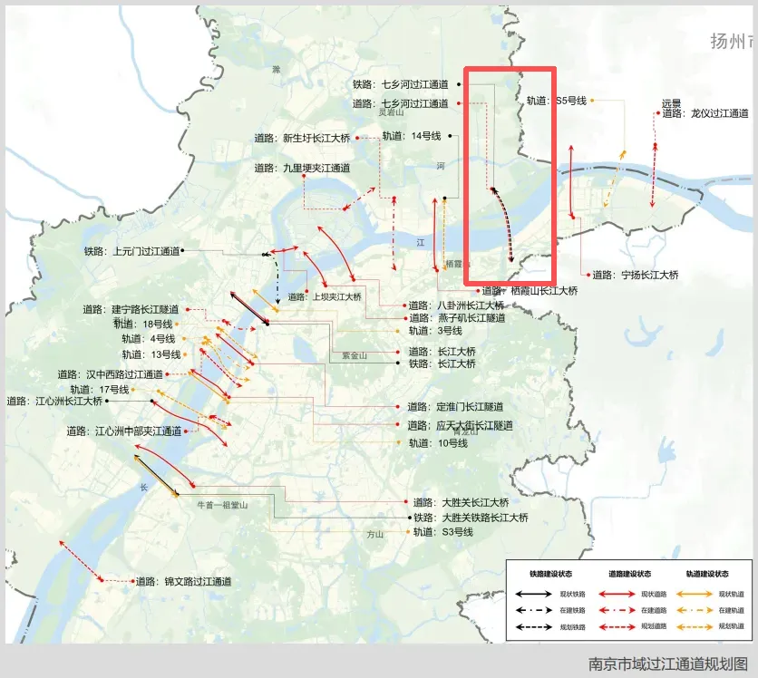一方面在公路网,其主要服务于城市三环(S002)的过江需求,促进龙潭片区与江北新城的联运发展,推动南京都市圈北部城镇的协同发展;