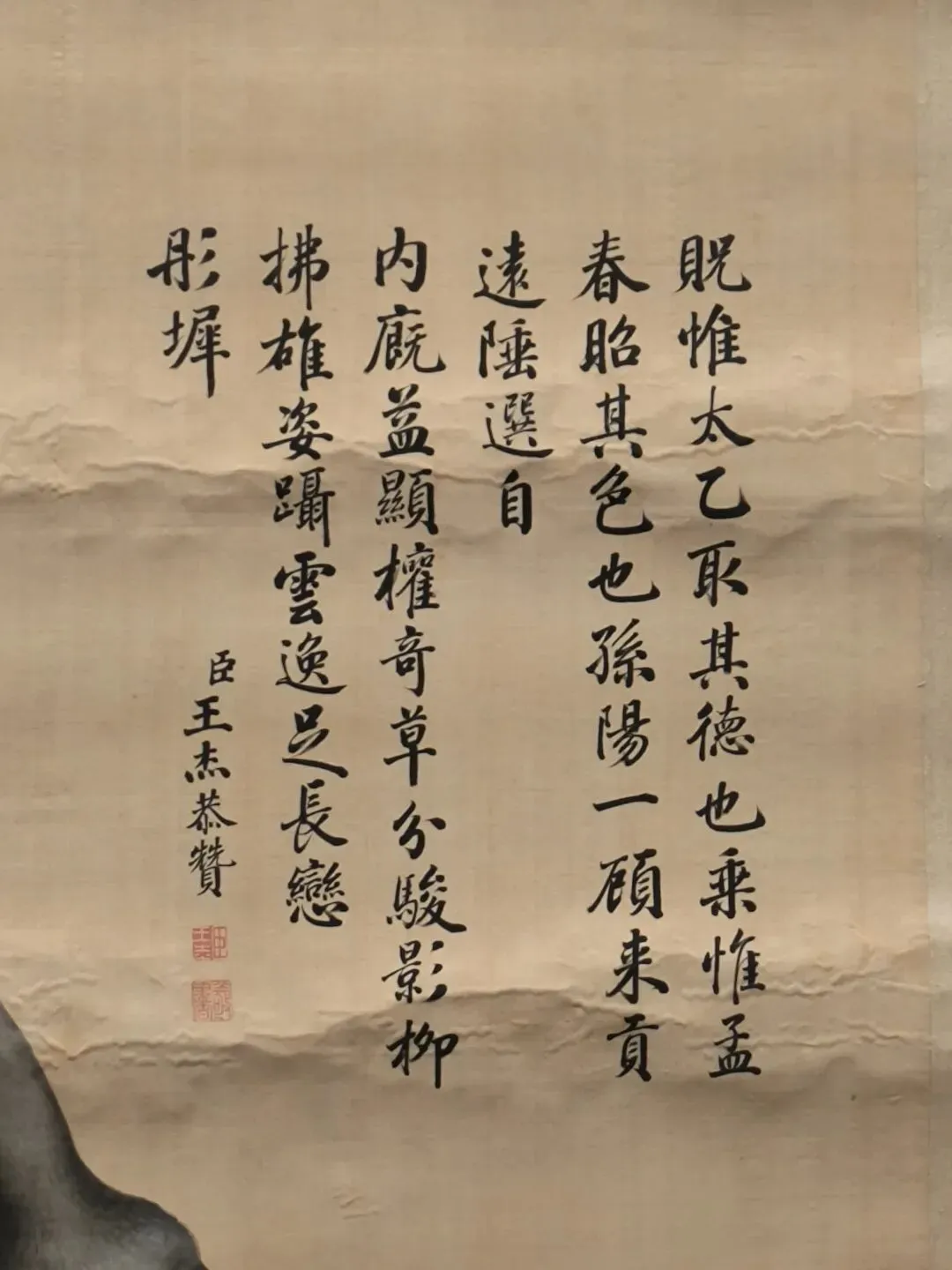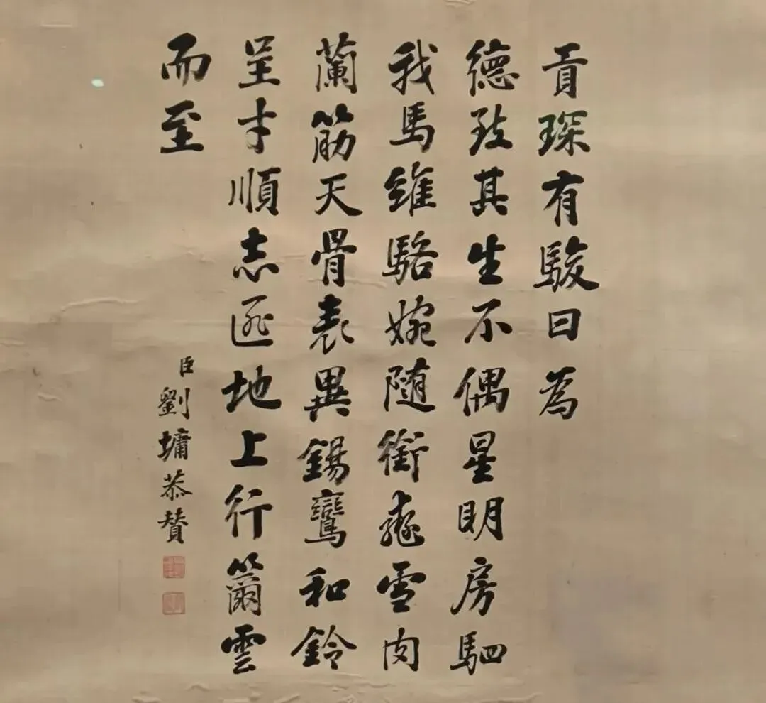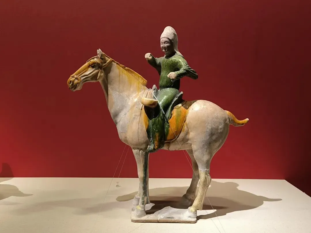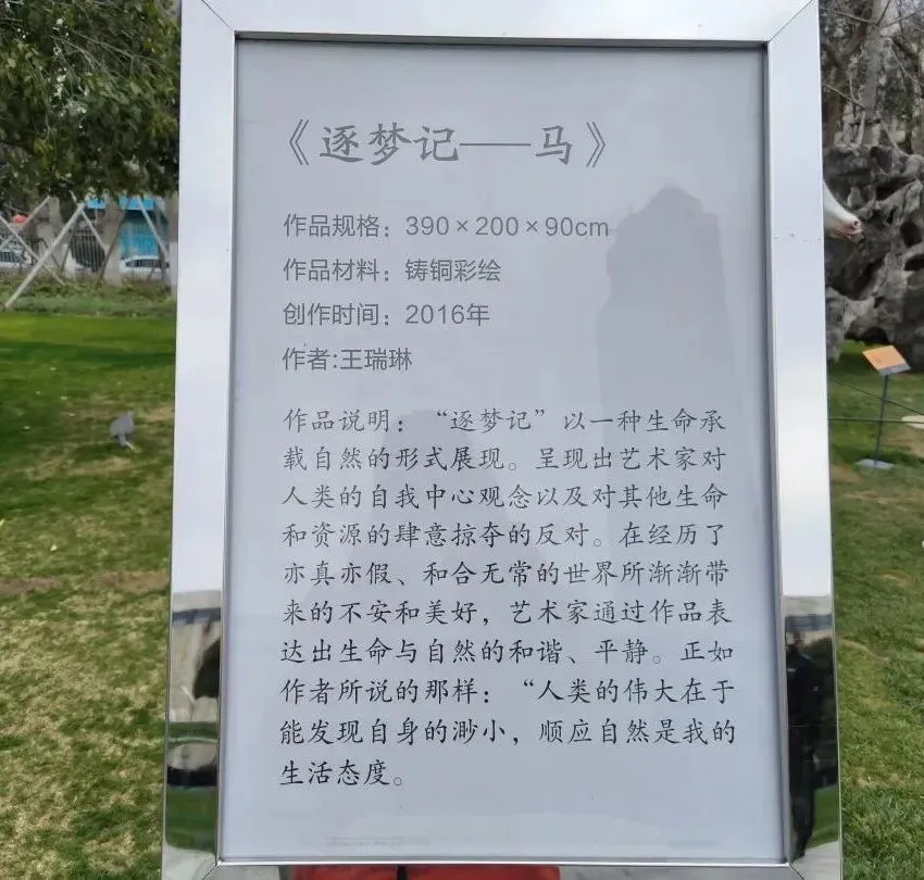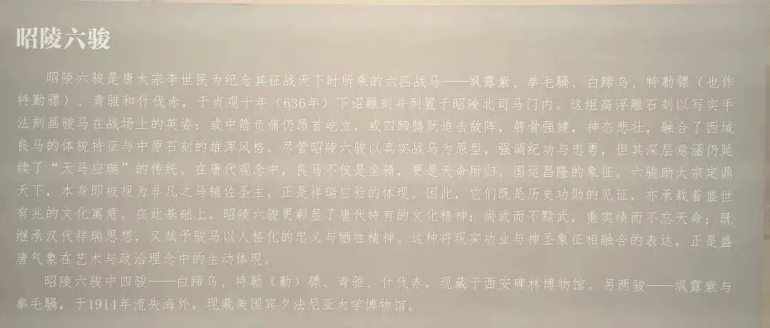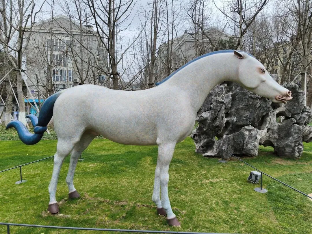 将马称为“龙之媒”,自此与“祥瑞”相关联。汉武帝特制作一批“马蹄金”作为给臣子的特殊赏赐。被汉武帝盛赞的“天马”史书上记载有两种,一为渥洼水马。这“天马”长什么样呢,通过出土的汉代陶马得以窥见,体高腿长,颈昂胸阔,筋骨遒劲且神采飞扬,既具实战之用,亦富审美之姿。汉代除了陶马,更多的是刻在汉画砖上,在多个博物馆设有专题展厅,例如山博、徐博等,马在汉画砖上出现极多。当然,即便引进了好的品种,个体仍有千差万别。在徐州汉画砖艺术馆看到一个石棺床上刻有一幅画——“伯乐相马”,湖南博物馆的马王堆也出土有《相马经》。何为好马就不在这儿研究了,想必这东汉的陶马当是符合“伯乐标准”的好马。“天马”的形象制成陶俑陪葬或是刻在石头上,到了南北朝时期,出现在壁画上并保存至今得以欣赏。这是唐张萱的《虢国夫人游春图》,宋摹本,原作现藏于辽宁省博物馆,展厅中展呈的是印刷品。有的,后面将会看到南博院馆藏的清代画家画的马,到时再与唐人画马作一比较。三彩是对汉代釉陶的发展。随着大唐与西域交流的密切,大量的马、骆驼等形象涌现。“三彩”是在白色素胎上饰以黄、绿、白为主的釉彩,不仅限三彩,最珍贵且少见的是蓝色或黑色,国博有一匹黑釉陶马,可说是这一时期的杰作,无论是釉色还是马的体态和神情刻画皆为佳品。从战国的千乘,到后来称作天马的大宛马,说的是马的改良。这么多马,哪些更有名呢,或者换言之,哪匹马赋予了“名字”?唐贞观十年(公元636年)立于唐太宗昭陵北司马门内的6块大型浮雕石刻,分别名为“拳毛䯄”、“什伐赤”、“白蹄乌”、“特勒骠”、“青骓”以及“飒露紫”。接下来进入明清时期,明代的作品展出《胡笳十八拍》。《胡笳十八拍图》是以蔡文姬归汉为题的叙事性绘画作品。采用分段式构图,通过十八个连续场景展现文姬被掳、思乡、归汉的全过程,画面中人物服饰与建筑形制具有典型明代宫廷绘画特征。清代画作代表是乾隆年间的《八峻图》。这些是真迹,也是此次展品中的重磅文物,听讲解员说,这些真迹原是要带往台北的,因画幅过长过大,没能带走,方成为南博院馆藏,且十二年中展出一次(只在马年展出),此番特展有幸看到。这《八骏图》中的马与真马等大,均为中亚等地进贡清王朝的罕见名马,神形各异,栩栩如生。艾启蒙(1708—1780),字醒庵,波西米亚(今属捷克)人,天主教耶稣会传教士,乾隆十年(1745)来华,师从郎世宁研习绘画。师从郎世宁,故尔艾启蒙画马,既具有中国传统绘画中的写意,又兼西方绘画的写实。曹文埴(1735年—1798年),同其子曹振镛世称“父子宰相”,从乾隆二十五年(1760年)到道光十五年(1835年),历三代皇帝。把持朝政75年,清王朝几乎有大半历史都在他们父子的影响之下。再看另一幅画作,题写者:刘墉(1720年—1805年)。刘墉,军机大臣刘统勋之子,一生为官五十余载,宦海沉浮,几经起落,有说他为官清廉,也有说他为人圆滑。字如其人,其品性可通过书法窥见一二。王杰(1725年—1805年),清朝状元、陕西第一名臣。在朝四十余年,忠清劲直,老成端谨,不结党营私,不趋炎附势,斗倒和珅的“勇士”。为官四十载,所带之物唯有书籍数十箱,嘉庆帝盛赞其“直道一身立庙堂,清风两袖返韩城”。艾启蒙的《八骏图》,南博院将其制作成动画,在展厅内循环播放。马,龙之媒也,除了以画作、雕刻的方式呈现,还展呈了几件清宫中的珍品,这三件为清康熙年间的素三彩龙纹盘。此卷为董其昌临米芾《天马赋》,绢本大字,用笔跳宕雄健。董其昌的行书从中年开始受米芾的影响,此赋文辞与书法均为米芾佳作,深为董氏欣赏。南博院展品丰富,每次借不同的主题将馆藏的文物拿出来展呈。马年说马,顺便将南博院其他展厅中关于马的内容一并“挑出来”,罗列于此。特展馆二层,位于“天马应瑞展”的楼上是另一临展:璀璨的凝结,格拉斯哥博物馆藏,意大利绘画大师作品展。其制作年代约在1600年,中国的明朝,苏西尼创作的青铜雕塑。下面这件刻有四个“海马”造型的是件漆器,清乾隆时期的剔红波涛海马纹盖盒。这件紫砂胎剔红人物故事图八角壶(图案中有马),同样是件漆器,所不同的是紫砂胎底,实为罕见,也是清乾隆时期作品,也是在“镂云裁月”展厅中展呈。一圈转下来,从古代江苏到明清,历代“马”的文物少见,多集中于唐代,仍以唐三彩居多。还有一件彩绘陶马,相对于其他“花里胡哨”的“三彩”更喜欢这件陶马。看过各个时期,不同形式的“马”,走出展馆,外面草地上还有一匹“铸铜彩绘”马。题为“逐梦记”,显然这是一件艺术作品,赋予“马”以新的内涵,不再局限于祥瑞和“天马”。当离开马很远之后,再回望它,一幅忧伤的样子。