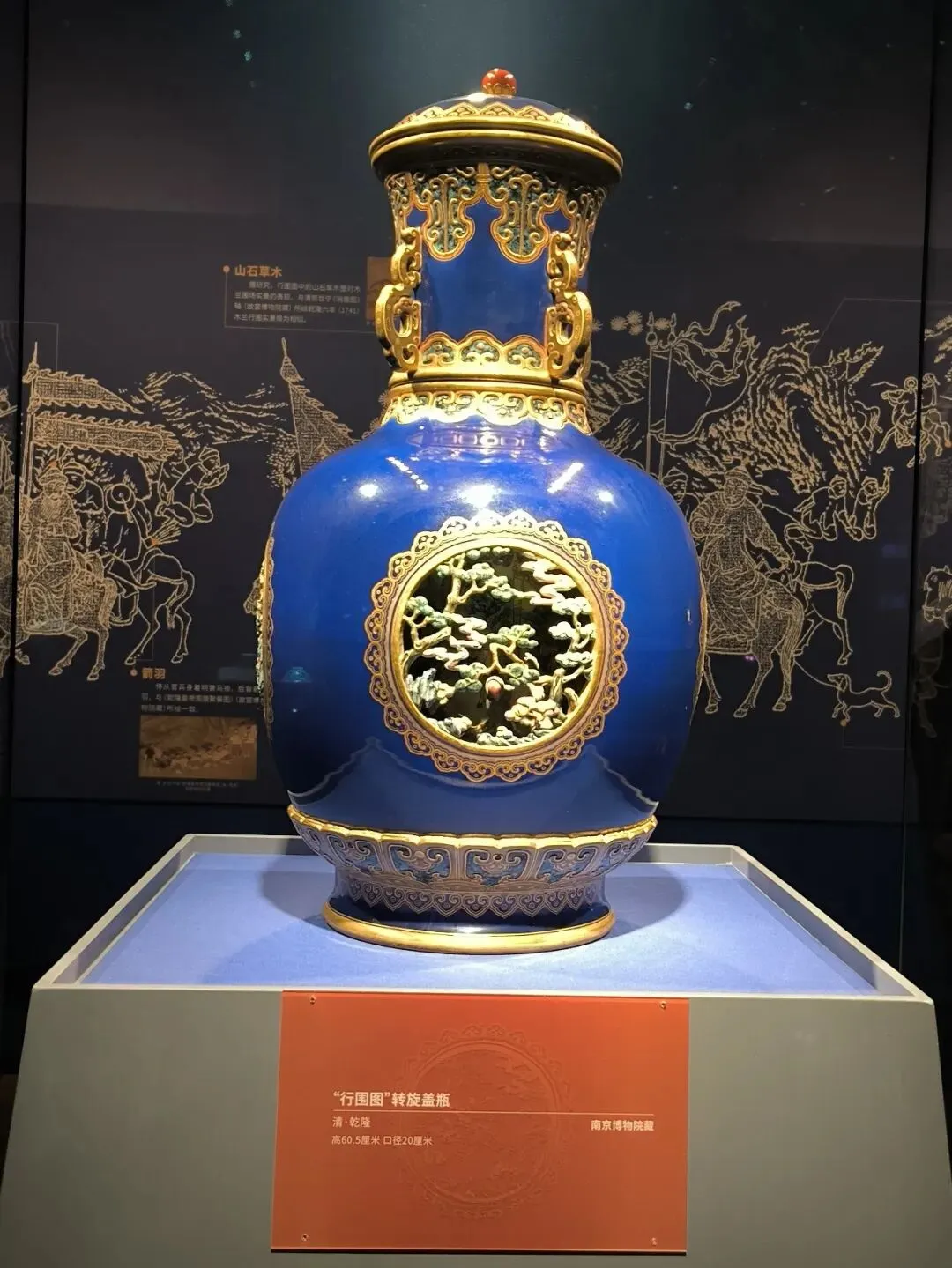 先说镇院之宝馆开了,那个西汉金兽“下架”后,如今展出的是大成至巧——清乾隆“行围图”旋转盖瓶。