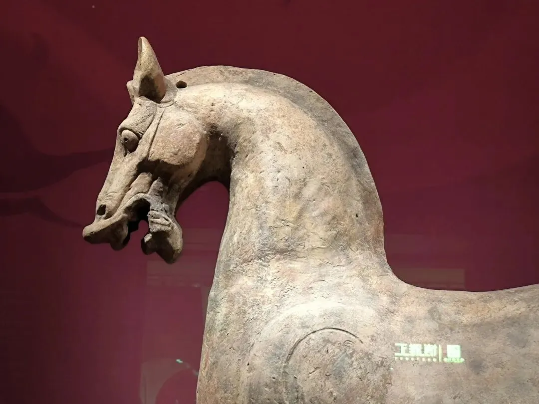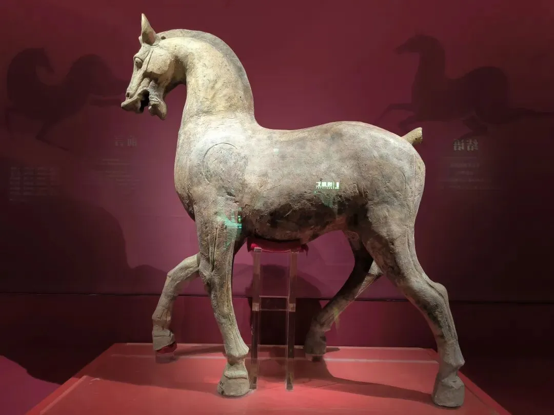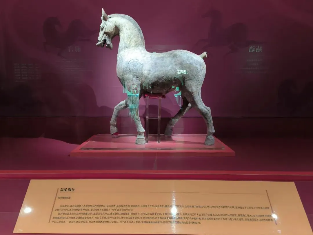 在特展厅一楼,正对展室入口是一个东汉时期的陶马,便是本文封面上的这张照片。