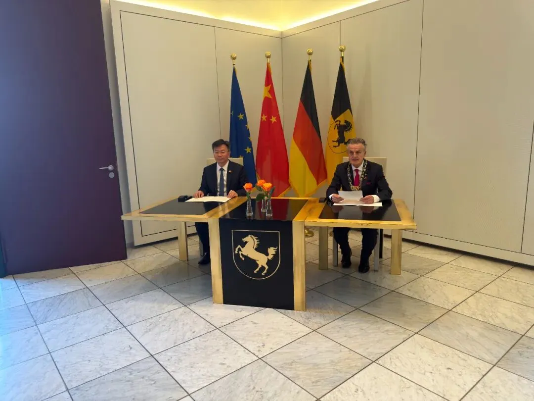 黄总领事表示,近一年来,南京与斯图加特互访愈发频密,交流日趋活跃,合作持续升温,信任越聚越深。两地友城关系历久弥新,在经贸交往、体育合作、人文交流及城市发展等各领域不断取得新突破,成为中德友城合作典范。在国际形势复杂多变的背景下,地方层面的互信合作尤显重要,南京与斯图加特应立足友城关系的扎实基础,携手推动各领域合作从交流互访向项目落地、成果转化升级。中国驻法兰克福总领馆将一如既往发挥桥梁纽带作用,推动两地合作不断走深走实。