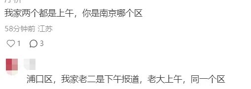 据悉,今天南京孩子报道时间段并不统一,同一个区,有上午报道的,也有下午报道。