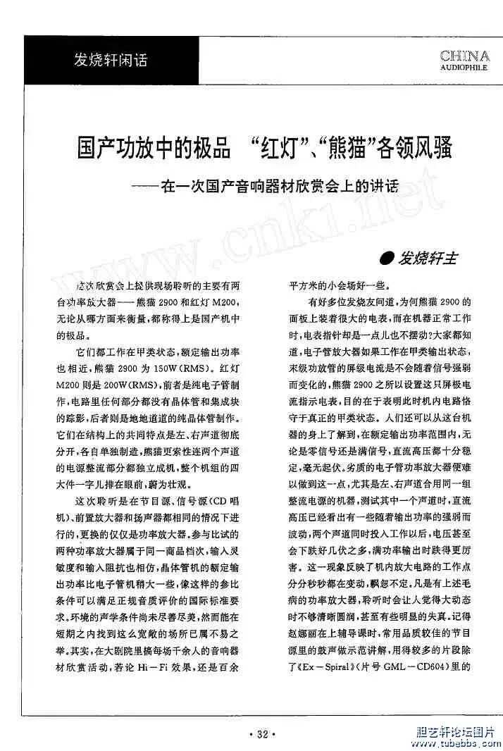 最早是发烧轩主田寿宇1992年在电子报的《实用电子文摘》杂志里面说过熊猫胆机2900和红灯M200后级(DM200应该是1995年后续型号),文章我贴在下面。