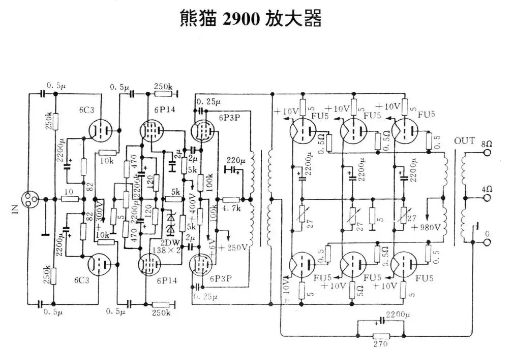 下面是网上关于熊猫2900胆机的资料,记得是杨维中老师说的,摘抄如下: 熊猫2900这部四分体的机器一共只做了2套,据说有一套已经失落民间,另一套还在南京无线电厂(或者熊猫电子集团)保存。为了让熊猫的血统得以延续,南京厂又实验性的推出了2900的所谓简化“推广版”2905,但由于社会和经营等各种复杂原因,熊猫胆机的血统还是夭折了!2905勉强生产了60套就全部停产了... 2900功放每声道4分体,其中两台放大器(每声道一台)、两台电源。共用包括 12支FU-5、4支6P3P、4支6P14、4支6C3在内的24支国产电子管,灯丝耗电就有440W! 每声道静态电流为600余毫安,FU-5屏压1000V(980V),只FU-5静态屏耗为1200W(两个声道)6P3P单只屏耗约为20W,两声的共计80W,这样算来,整套机器的静态耗电约为1720W!!再加上4支6P14和4支6C3以及变压器的静态损耗、各种电阻的耗散功率,说它开机不开声每小时就走2度电一点也不夸张!!整机工作在屏流不随信号增减变化的纯甲类推挽状态,满输出不失真额定功率为150W。 这样的耗电大户可能不是一般家庭能承受的! 作为它的普及“推广版”熊猫2905(以下通称“小熊猫”或2905)为整套2分体结构,即每个声道独立一台放大器;2905可以大致看成是2900的缩小版,它继承了2900绝大多数设计有点和精髓! 每套2905 使用了14支国产电子管,其中包括4支FU-5、4支6P3P、4支6P14、2支6N1。从用管上可以看出只是把2900的3组FU-5并联改成了一组,电压放大管由两支6C3改成了单只双三极管6N1(指每声道)。其余的几乎未作改动,完全继承了2900平衡输入纯后级的设计核心。每声道静态平流(单指FU-5功放管)200毫安,屏压980V,20支电子管的灯丝耗电为180W左右(其中FU-5灯丝耗散了120W),累加计算起来,整套2905静态耗电约为700W左右,电路同2900一样,工作于纯甲类推挽状态不失真输出音频功率约50W左右。 遗憾的是2900的详细资料(尤其是电源部分)以及2905的全部电路的“庐山真面目”至今没有看到! 2905的资料收集到的甚少,可以说没有什么真正有价值的东西,也就是一些外部照片罢了。 上面是关于熊猫厂关于2900和2905这两个型号胆机的介绍。 那么以前家电论坛还有个勃总,其实2010年也写过2900胆机这个事情,我也照抄如下: 当时南京无线电厂设计制造的熊猫2900电子管功管与大和舰的制造有着异曲同工之处!也就是当时我国的音响工业基础不足以造出这类巨无霸的功放,因为南京无线电厂为了证明自已在音响制造上具有无所不能的力量,决心造一台极流弊的机器到拉斯维加斯的音展上去灭掉鬼佬,于是南京厂的陈工程师拜田寿宇大师为师,根据原中国唱片厂总工程师李宝善先生的某个电子管功放线路搞出了熊猫2900电子管功放,这台牛机用了四分体型式,即双单声道电源分体型式!整机高压电源不用电解电容滤波,用了极昂贵的聚丙烯电容,整机用了4只6C3、4只6P14、4只6P3P以及6只805管组成的全平衡推换甲类功放!这个推动电路结构现在看下来是有问题的,即便用了电感负载的阴极跟随器线路,用一只6P3P管子用驱动带栅流的3只805管也会出现欠推动的状态,那二只巨大无比的输出变压器在当时成本每只高于索尼KV3400监视器的售价!这台机子当时搞的很仓促,完成后拿到拉斯维加斯去展出后就悄无声息了,网上有人说当时得了大奖,为中华民族争光是无稽之谈!后来在一个偶然的场合勃总听到了这台机器的声音,与之对比的是马克26S的前级和马克20.6的甲类后级,熊猫发出了粗野而没有教养的声音,可以用不忍卒听四个字来形容!想来也很正常,那个设计工程师并没搞过这种大功率电子管功放,田寿宇那时比我们懂得多,但由于历史的局限,也不可能有设计这种功放的能力,更别说当时国产电子元件的品质不过关的问题严重阻碍国产音响器材的发展!就是在今天像这种大功率电子管功放的设计制造也是很难的,搞不清当年造这样大功率的巨无霸是不是去为了找美国佬决战的?当时像这种级别的电子管功放只有法国的JADIS和美国的卡维能造!连AR当时都不敢做!要知这三家厂当时属管机制造的龙头厂!勃总通过这个事例向大家说明:设计制造器材要有技术储备:即以前成功设计制造某成功作品的经历,要结合自已的技术水平量力而行,切不可去做超出自已能力的事、否则一定失败! 综合这些来看,事情还是清楚的,当年确实是作为一个形象工程去挑战了一下,也拿到CES上去参展了,但商品化不现实,接下来的2905的商品化也失败了,换句话说,2900胆机是一个当时形象工程或者政治任务的产物,不是一个商品经济背景下的市场化结果,成本、市场接受度等等各方面都没有考虑,是个计划经济产物。当然,熊猫这两款机器市面上也基本见不到了,至于声音到底如何,也只有当时听过的人才知道了。 至于红灯功放,其实查一下相关资料,事情也很简单。红灯DM200,设计生产于1995-97年,该机由原上海无线电二厂工程师邹元元设计并组织生产,由红灯通讯器材厂出品,田寿宇老师说的M200应该是之前的型号,可能也是邹元元设计。当时,著名的无线电国企上海无线电二厂解体,只剩下一个红灯经营公司经营“红灯”品牌,并分裂出去一个生产模拟手机的红灯通讯器材厂,邹元元当时栖身于这个厂,设计生产了DM200,当时邹元元不过30多岁。红灯DM200在当时应该确实还是属于国产不错的精品功放,因为后来邹元元跳出来成立了柯颂品牌,还是继续设计大功率后级,再后来又成