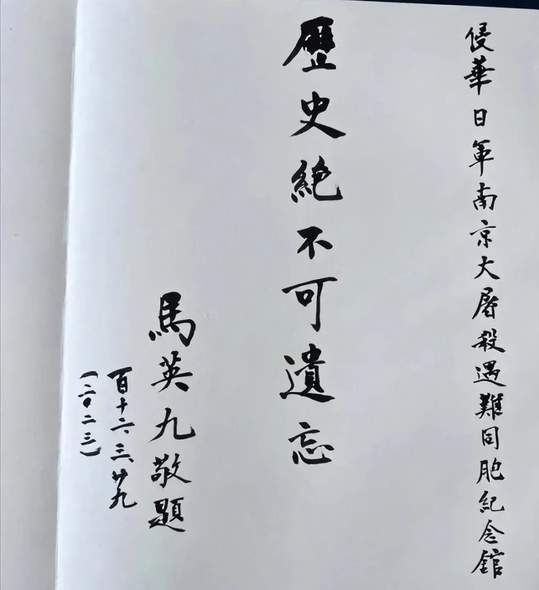 在纪念馆,马英九先生现场题词:“历史绝不可遗忘”。短短七个字,分量千钧,既道出对遇难同胞的深切缅怀,也彰显出正视历史、不忘国殇的坚定立场。