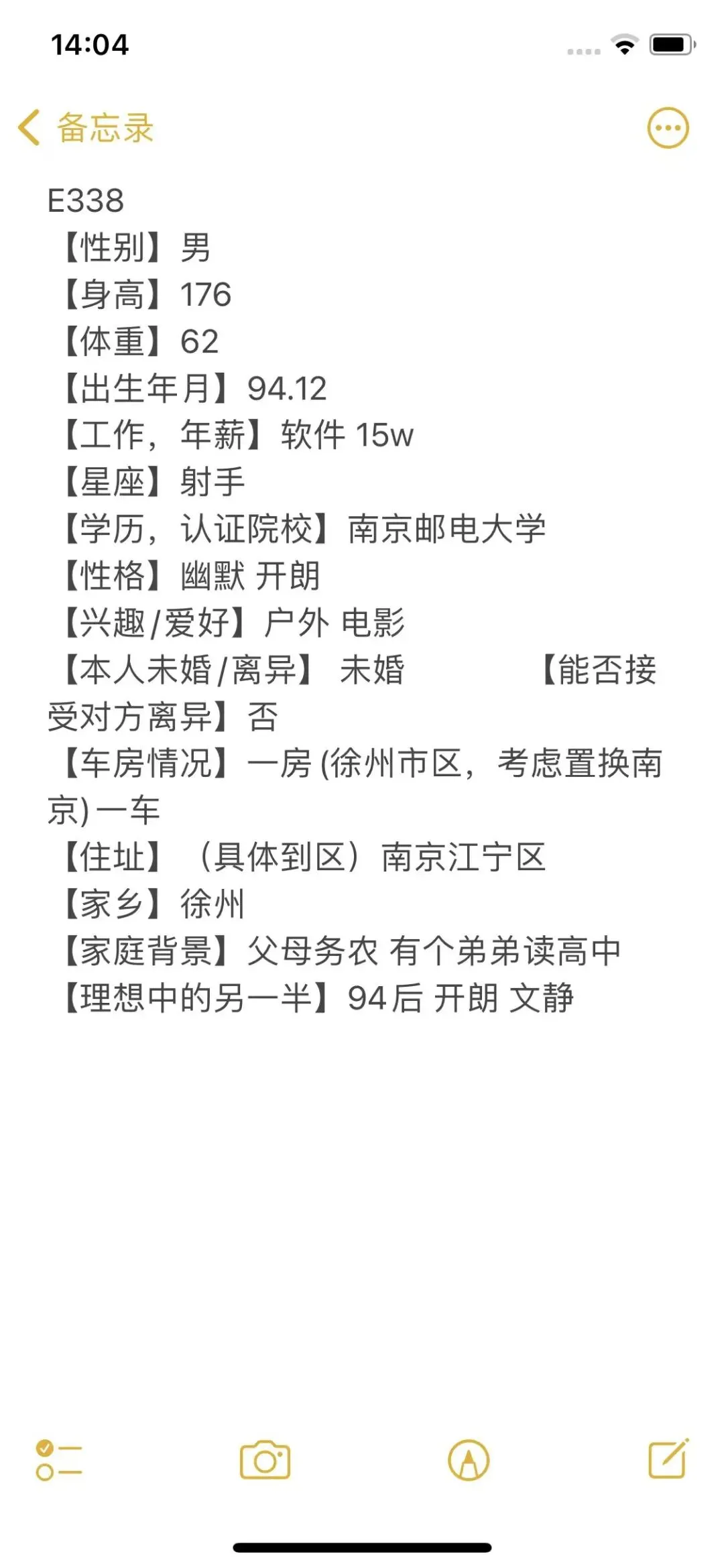 >南京脱单|94年,男,身高176,南京邮电大学,软件工作,徐州人在南京,目前在江宁区