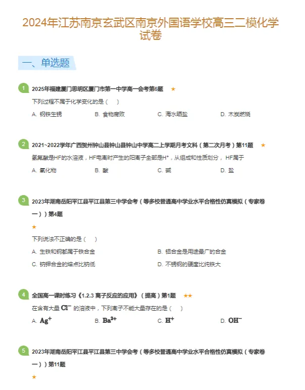 >2017-2024学年南京各区高三二模化学真题及答案解析