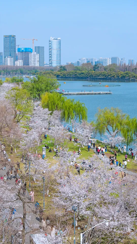 地铁2号线莫愁湖站直达。花期3月中下旬,免费开放。建议早上去,人少花好光线柔。公园很大,可以逛半天。