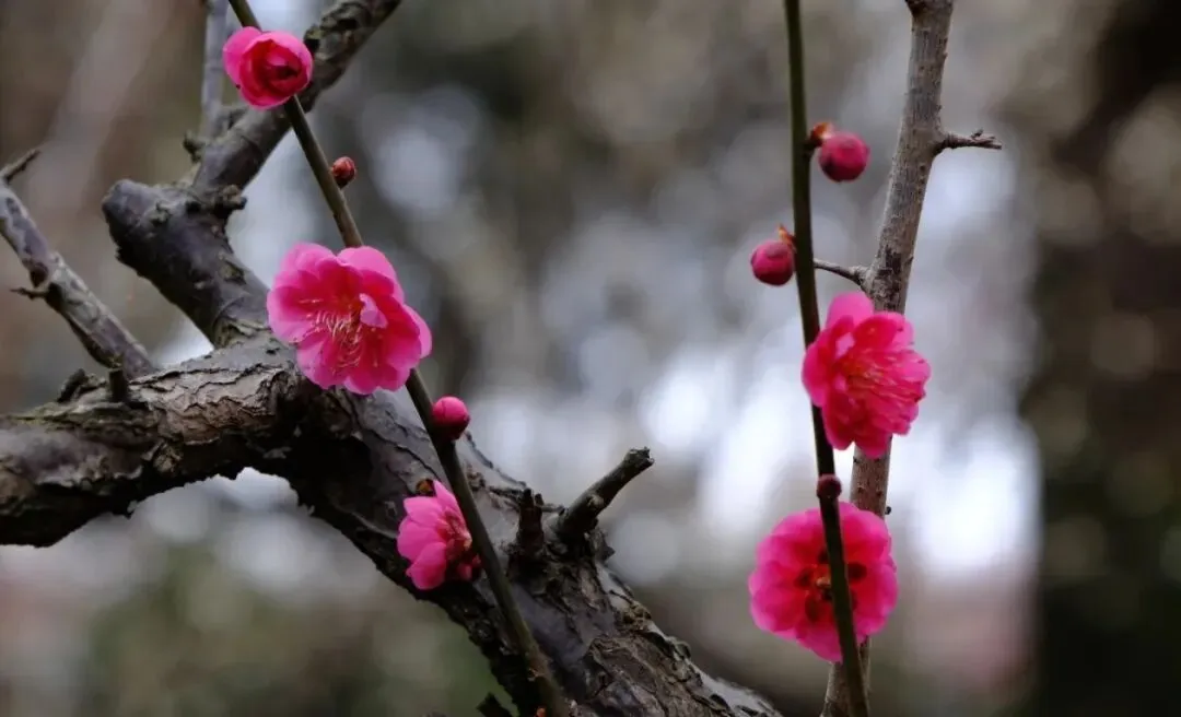 朱砂梅热烈、绿萼梅清冷、宫粉梅温柔