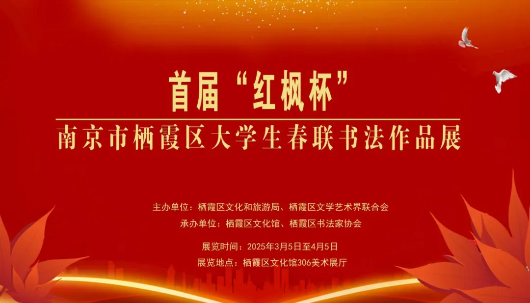 为弘扬中华优秀传统文化,厚植青年文化自信,展示栖霞高校学子才情风貌,特举办首届“红枫杯”南京市栖霞区大学生春联书法作品展。以联为媒,以书会友,此次展览展出部分入选大学生春联作品四十余幅作品,让传统楹联与青春笔力相遇,让栖霞山水人文与时代新声共鸣。详情