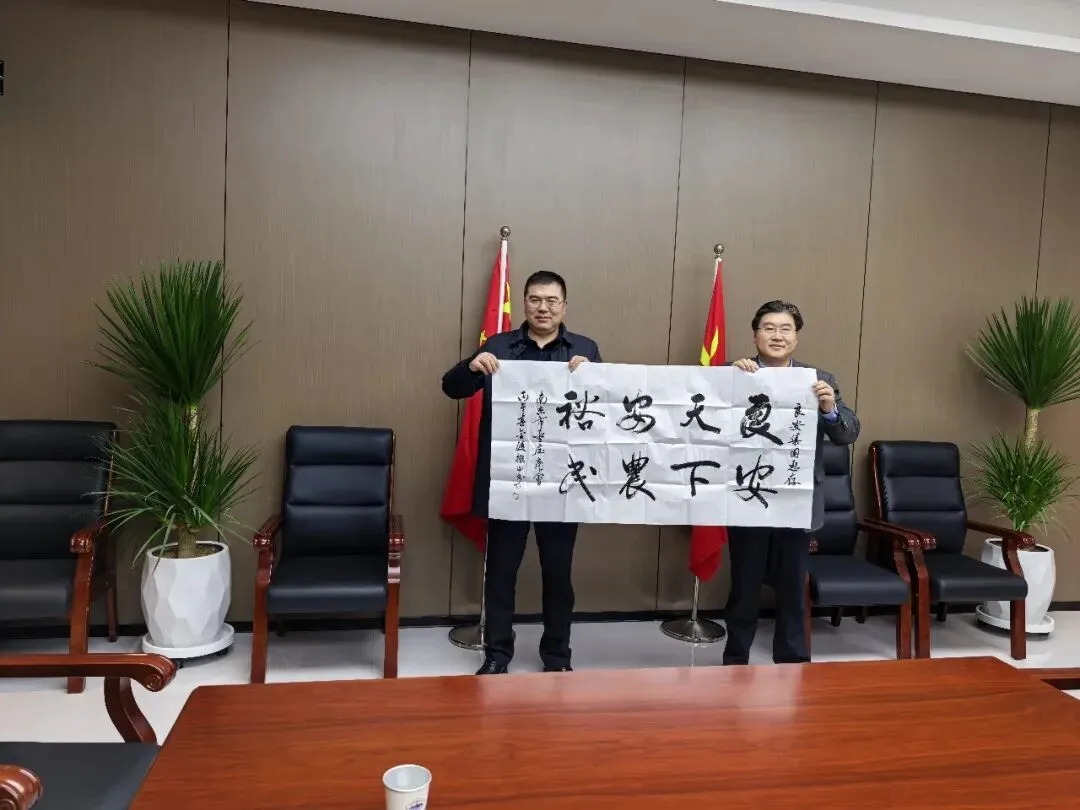 座谈会气氛热烈融洽。交流结束后,刘锋会长代表南京市枣庄商会,向良安集团赠送了由山东滕州籍著名书法家王振山院长亲笔书写的书法作品《良安天下安农裕民》,以此表达对项目美好前景的祝愿。随后,双方合影留念,并在当晚进行了餐叙,进一步加深了情谊。