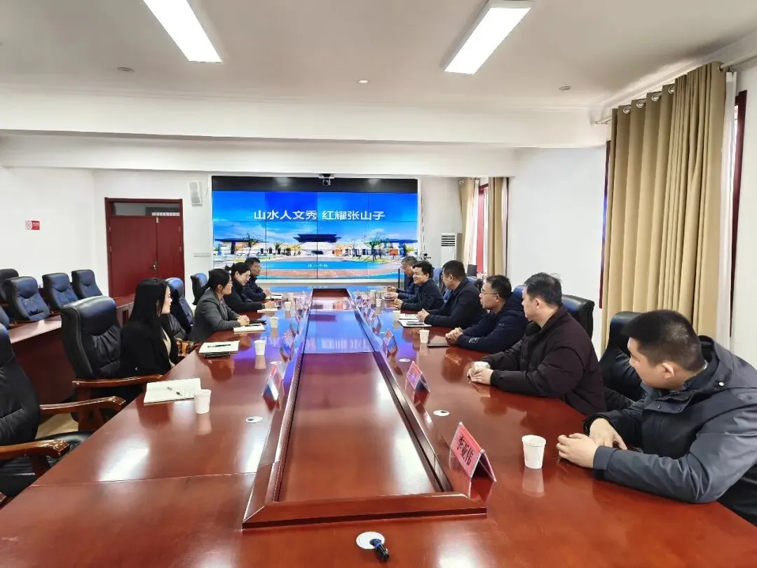随后,考察团一行返回张山子镇人民政府,在二楼东会议室进行了深入的座谈交流。座谈于上午9时05分开始。镇党委副书记田乘瑞首先代表镇党委、政府对南京市枣庄商会一行的到来表示热烈欢迎,并详细介绍了张山子镇的人文历史、地理优势以及近年来在优化营商环境、推动产业发展等方面取得的成就和未来规划。