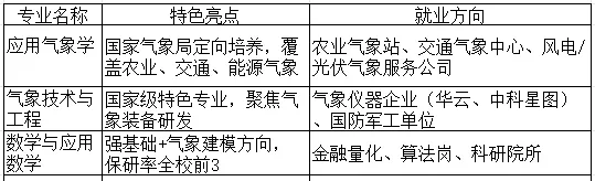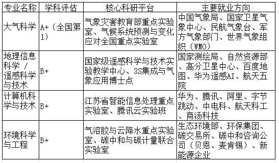 行业地位:中国气象局、国家卫星气象中心、航天科技集团、中电科等单位定向招聘首选高校,被誉为“中国气象人才摇篮”。