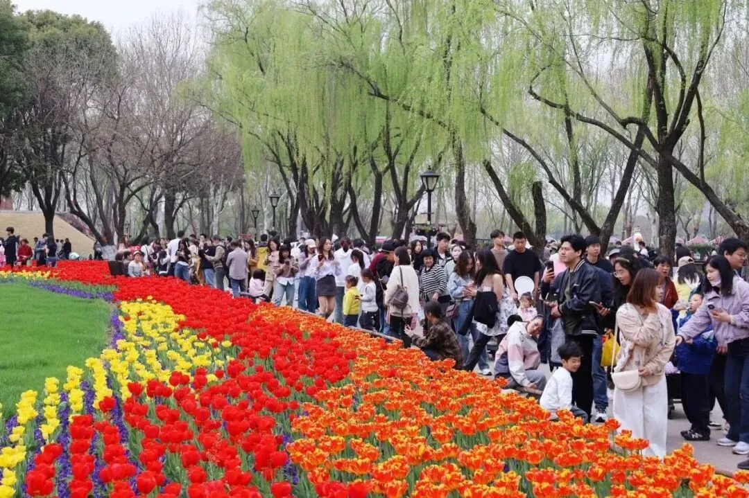 绿博园荷兰园精心挑选了22个品种的郁金香及3个品种的风信子,共同织就这场春日视觉盛宴。不仅有往年备受喜爱的“粉色印记”“皇家红”等经典品种温柔回归,更有花色热烈的新品种首次登场,为花海注入一抹惊艳亮色。