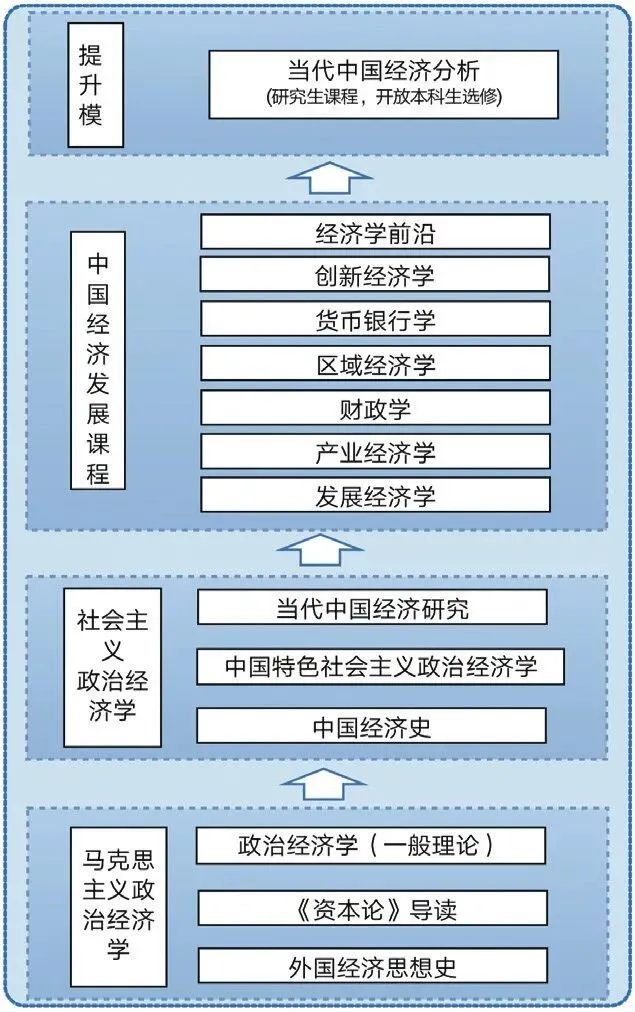 课程集群包括马克思主义政治经济学课程模块、社会主义政治经济学课程模块和中国经济运行和发展课程模块。三大模块之间,相互支撑,层层递进,从理论到实践,从研究到应用,对学生的知识学习、能力发展、价值观树立进行系统、全面、深刻的滋养。
